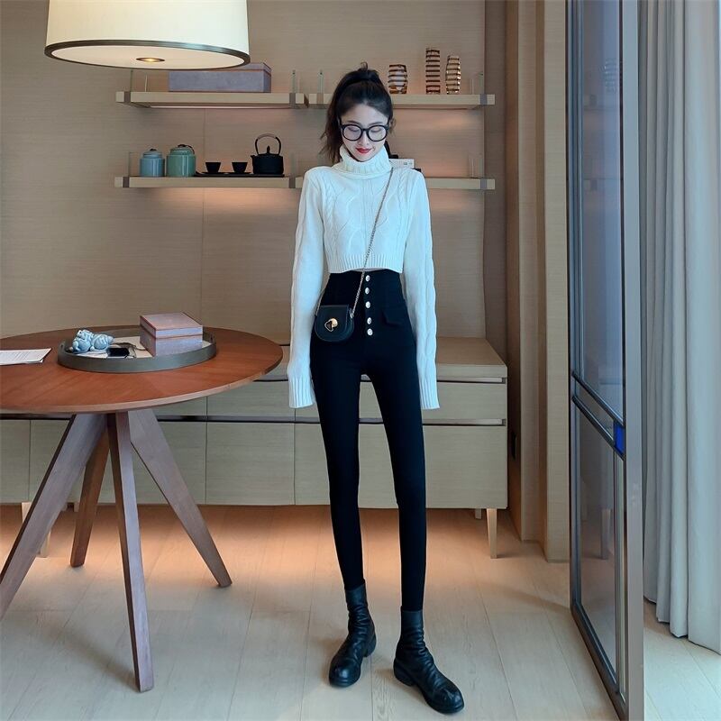 ブラックパンツ オータムハイウェストカジュアルブレスト薄手 秋物 セブンプリンセス64435039568