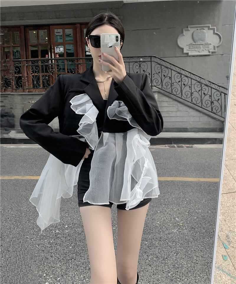 ジャケット オータムメッシュショートブラックトップス 秋物 セブンプリンセス87430230214