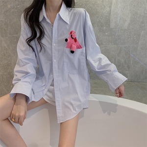 ストライプシャツ レディーススタンダードスタイルルーズオータムカジュアルトップス ロング レトロ 秋物 セブンプリンセス12127781621