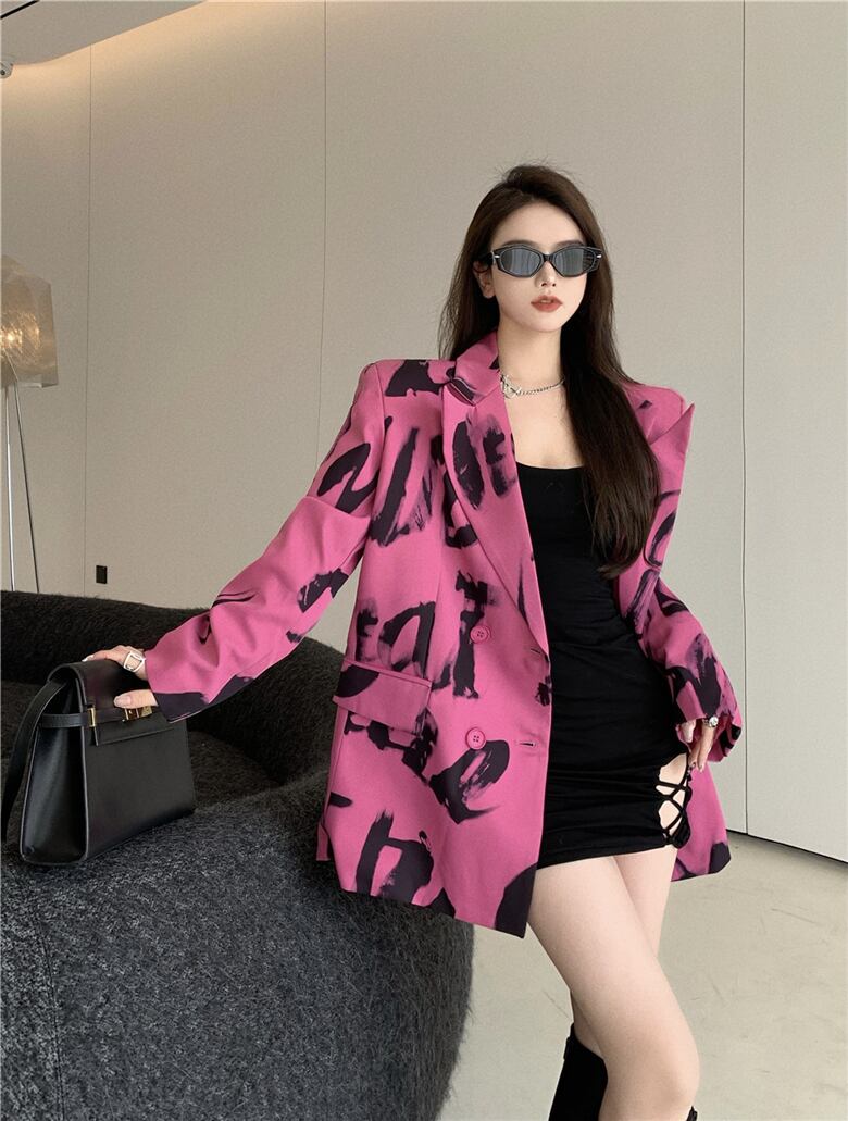 レッドカジュアルジャケット オータムスタンダードプリントルーズ ロング レトロ 秋物 セブンプリンセス43357451879