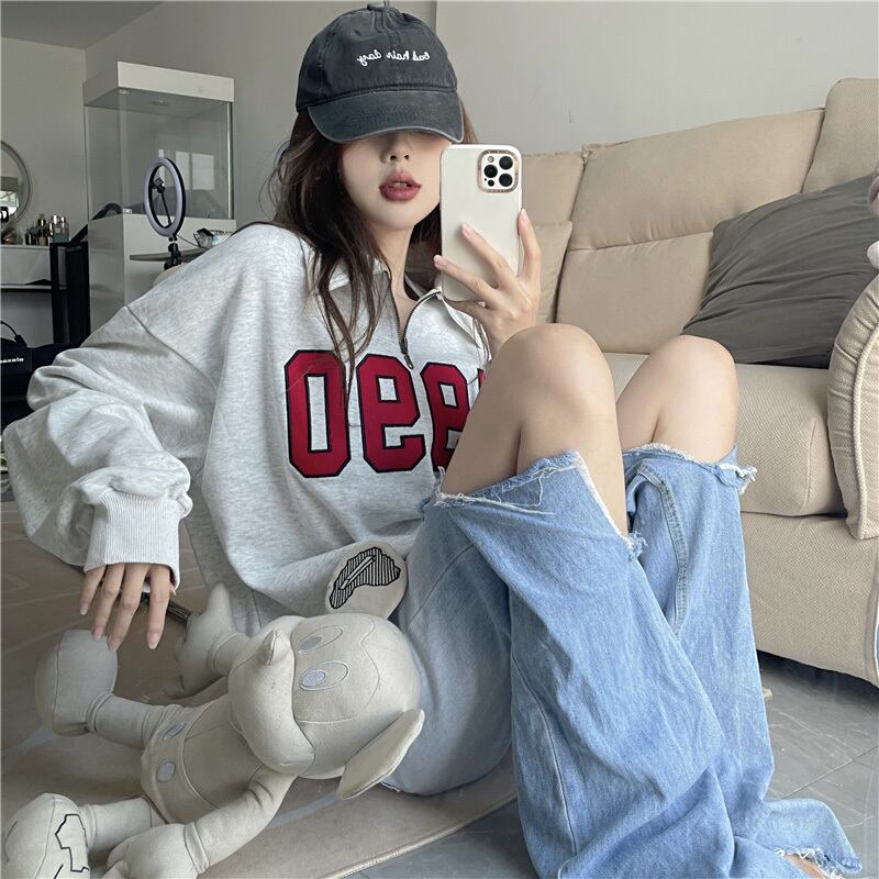 グレーセーター コート スプリングオータム薄手ルーズプリントプルオーバー トップス ロング 春物 秋物 セブンプリンセス7368105573