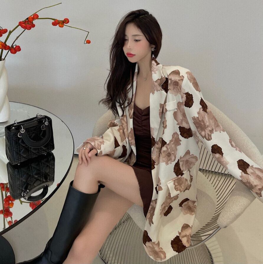 プリントジャケット レディーススプリングオータム薄手スタンダード レトロ 春物 秋物 セブンプリンセス97858164829