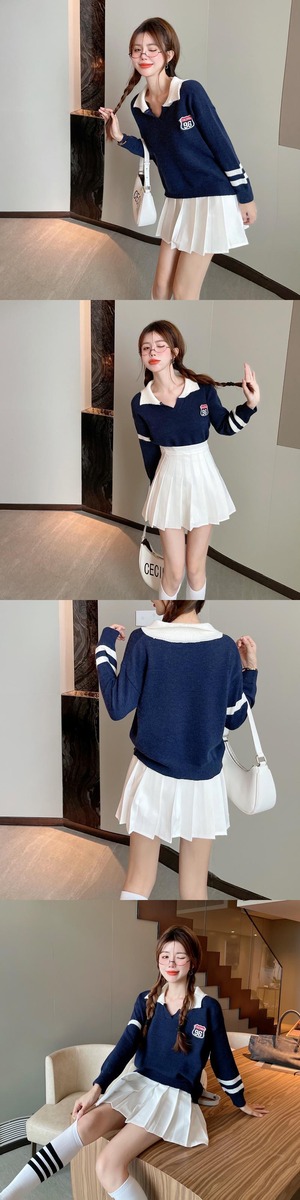 スタイルスプリングオータムニットセーター ハイウェストウェストプリーツスカート 春物 秋物 セブンプリンセス4139260265