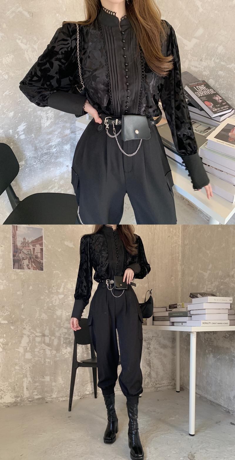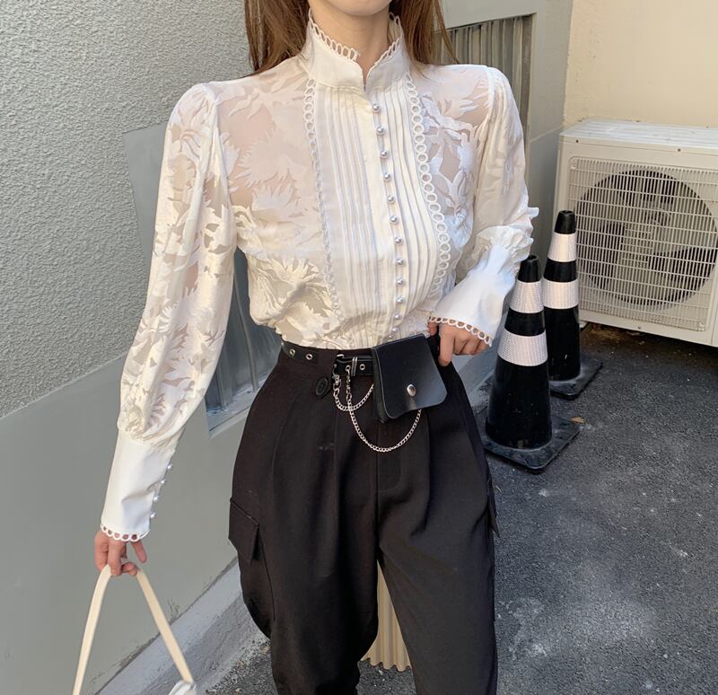 パターンプリーツスリーブシャツ トップス パンツ レディース ランタンスリーブ セブンプリンセス9968603278