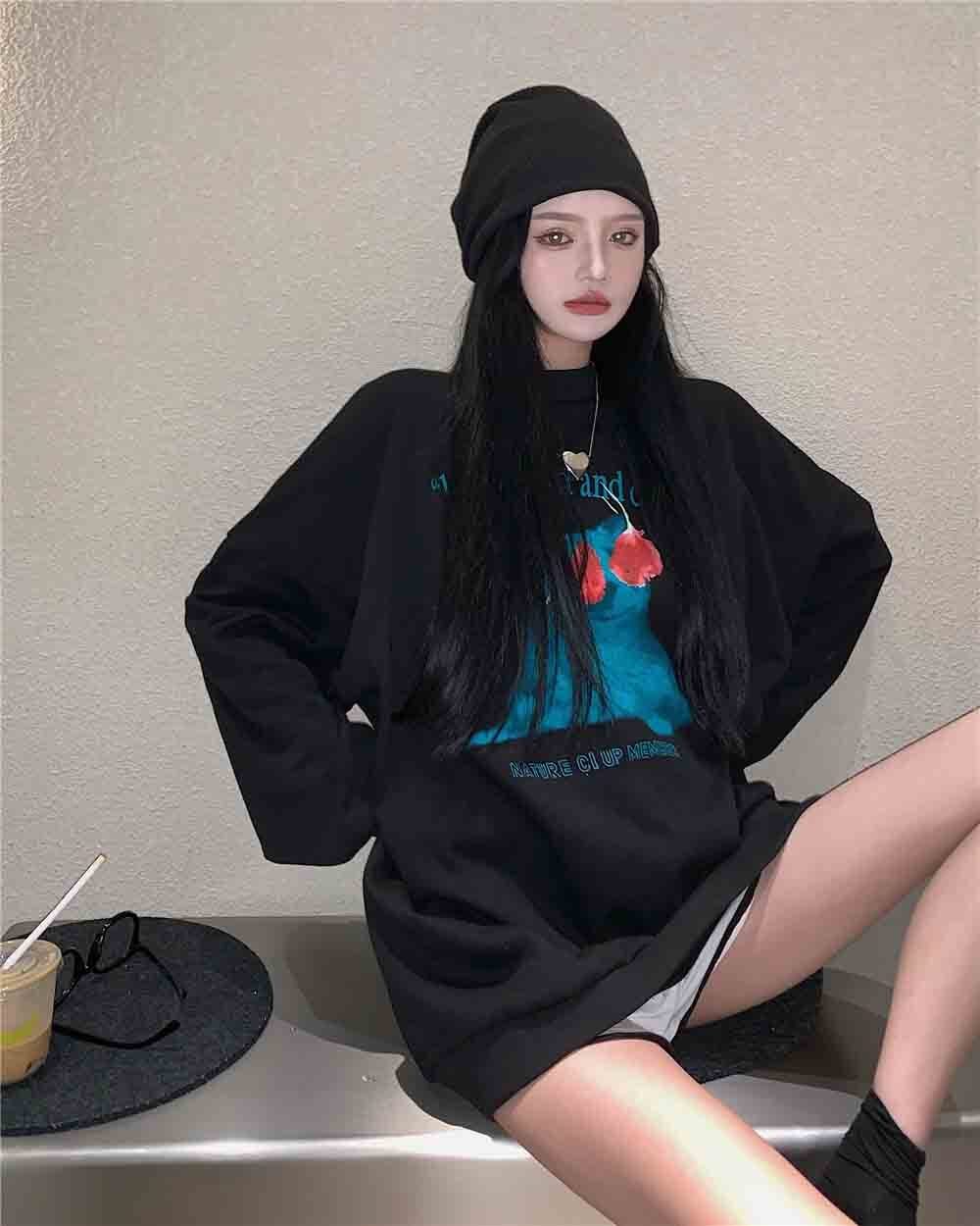 オータムセーター レディースルーズスタイルレッドプリントプルオーバー トップス ロング 秋物 セブンプリンセス98083762699