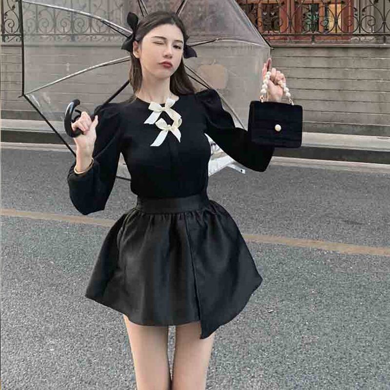 スリーブリボンショートシャツ Aラインブラックスカート ふわふわ セブンプリンセス42548045467