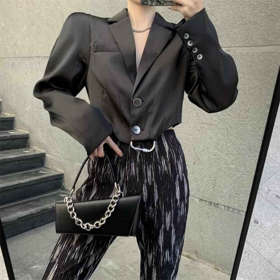 サテンブレザー オータムショートブラックジャケット ロング 秋物 セブンプリンセス65885635962