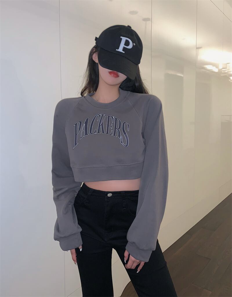 ショートラウンドネックセーター レディーススプリングオータムスタイルプリントルーズ薄手シャツ ロング 春物 秋物 Oネック セブンプリンセス96300836197