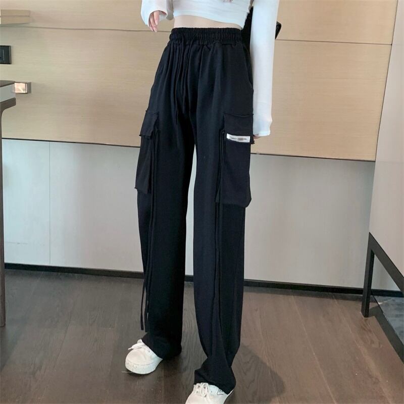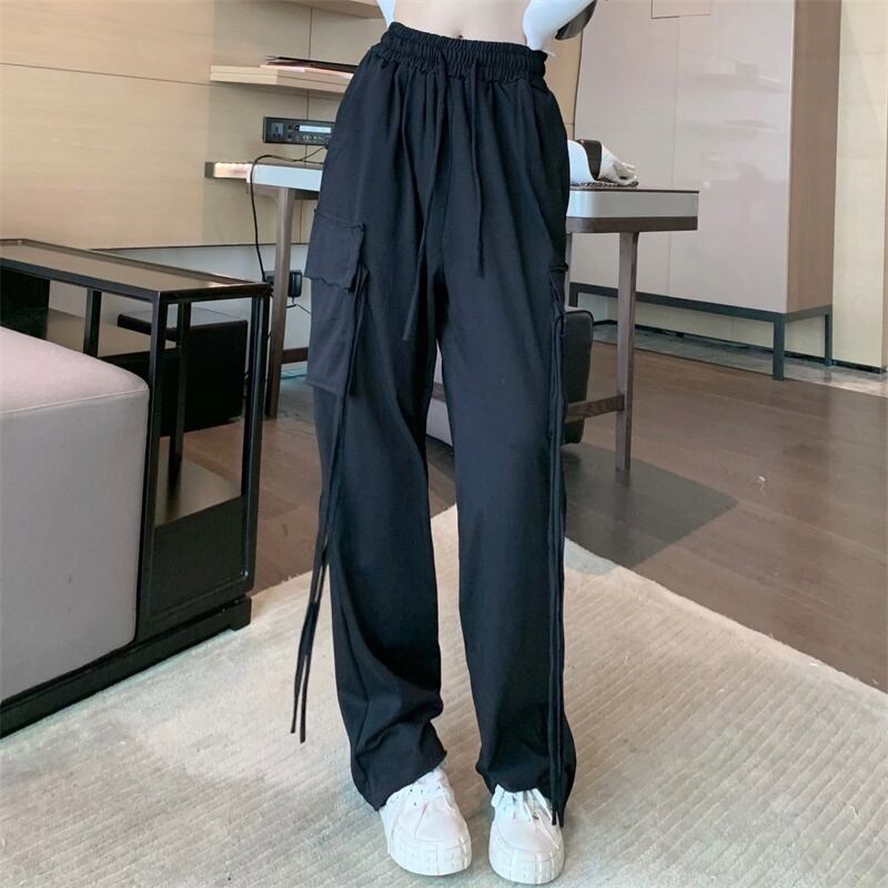 ブラックオーバーオール スプリングオータムストレッチハイウェストウェストスリムカジュアルパンツ エラスティック 伸縮 春物 秋物 セブンプリンセス99927476427