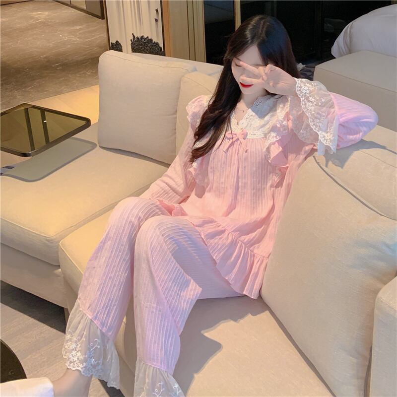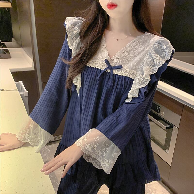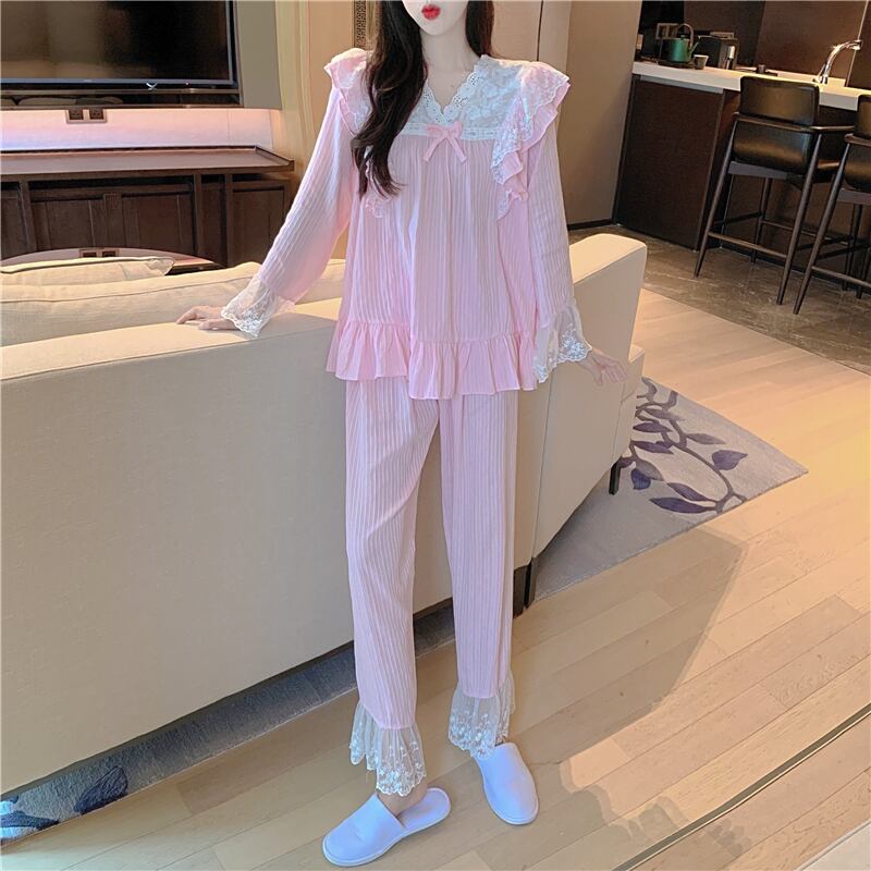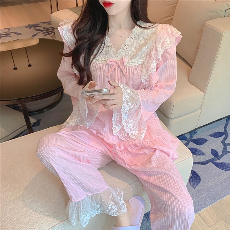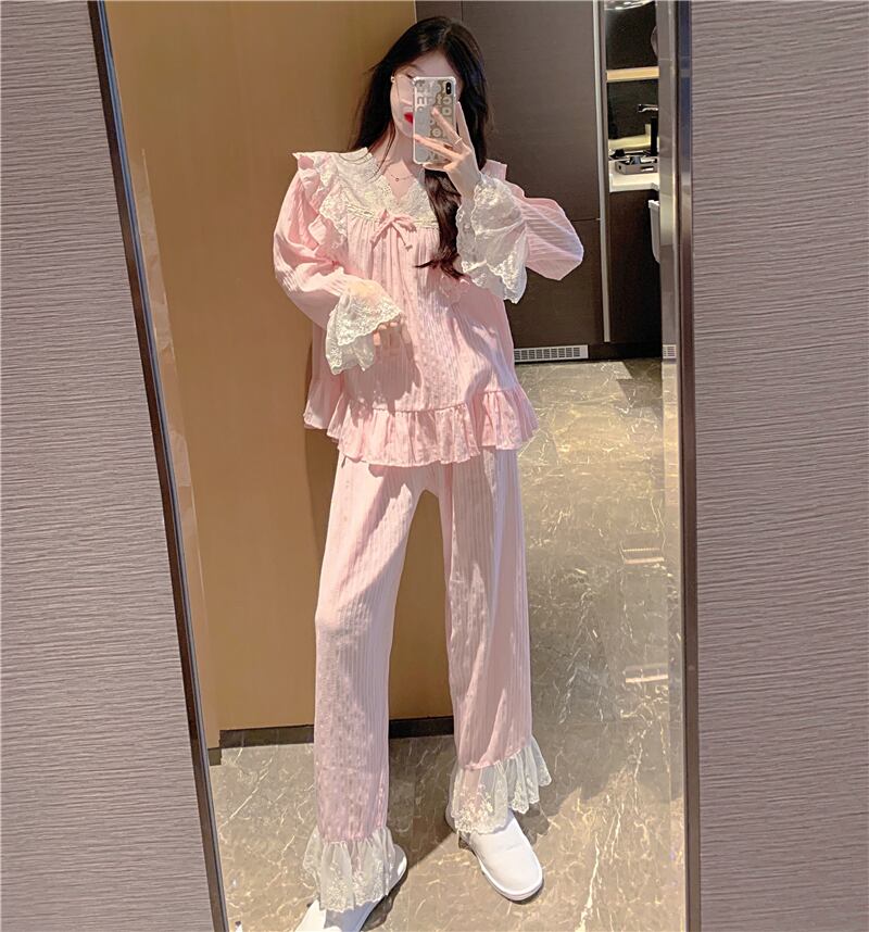 スプリングオータム薄手レースVネックブラウス ルーズパンツ カジュアル 春物 秋物 セブンプリンセス23695205341