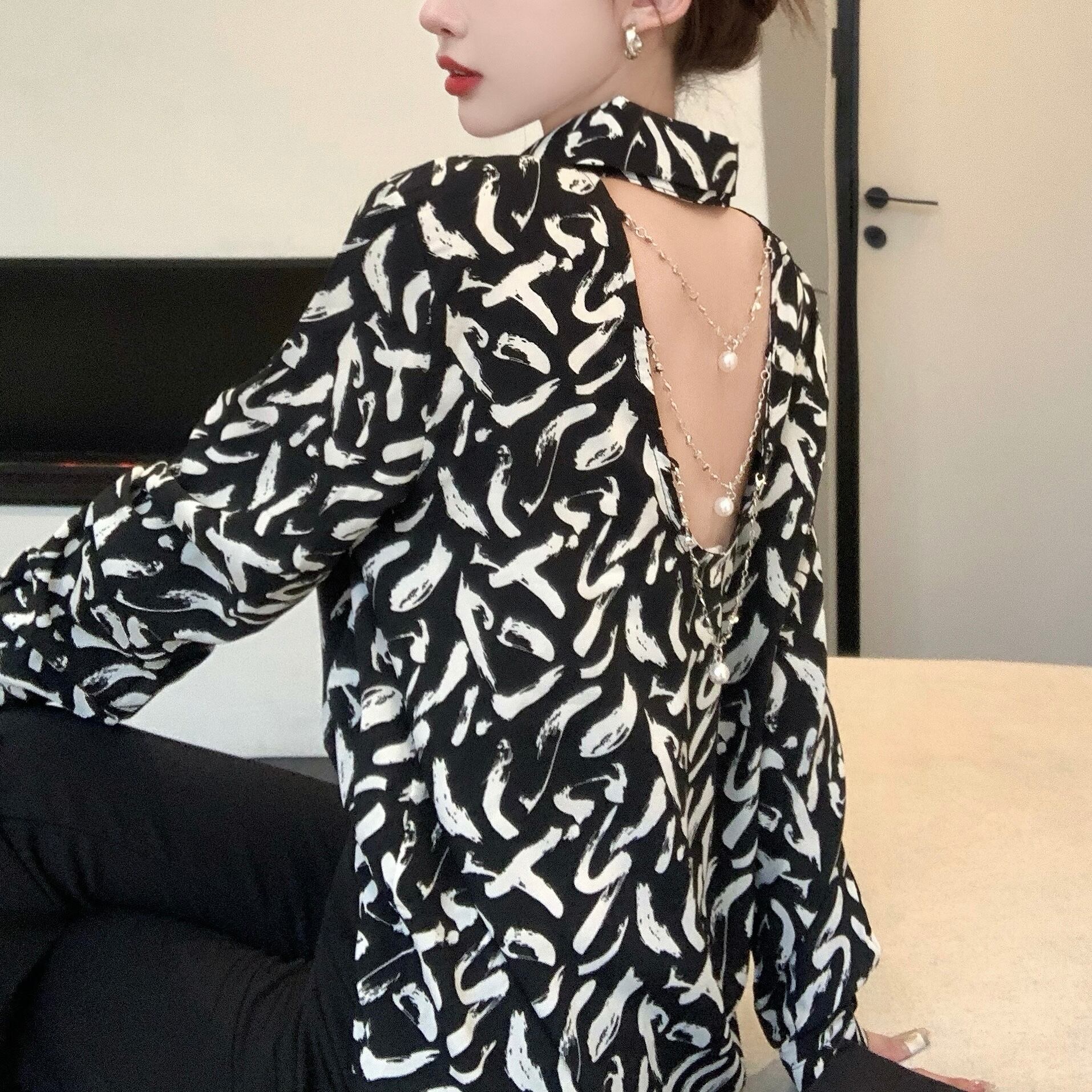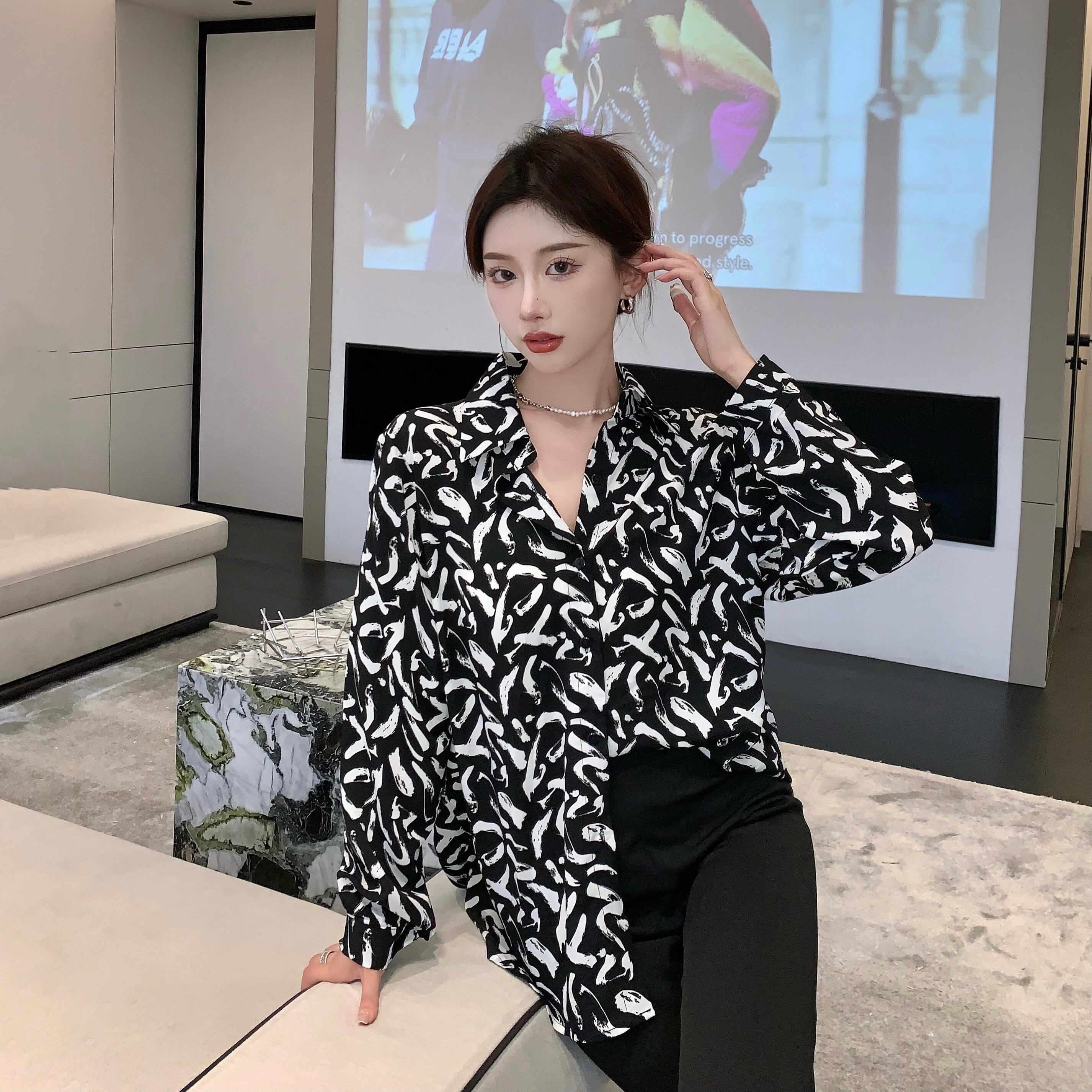 プリント柄シャツ レディースサマー薄手スタンダードバックレスルーズカーディガントップス ロング レトロ 夏物 セブンプリンセス81777189291