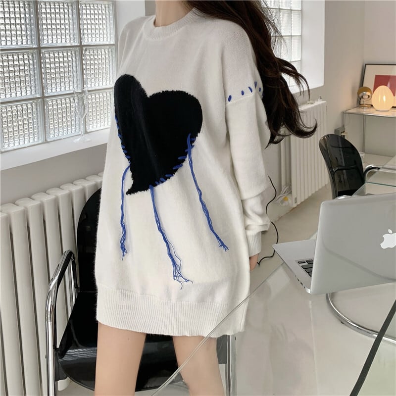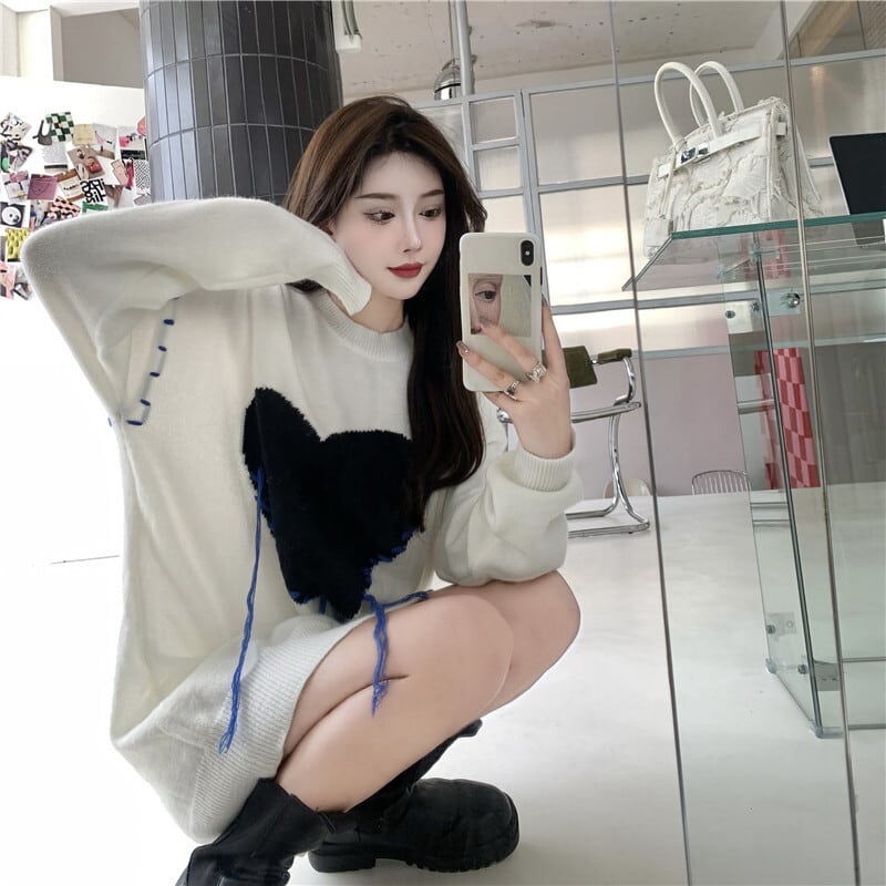 ホワイトセーター コート オータムニットルーズトップス ロング 秋物 セブンプリンセス52371324097