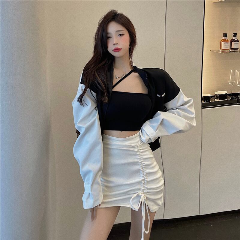 ホワイトAラインスカート スプリングオータムギャザーウェスト薄手 春物 秋物 セブンプリンセス69018418129