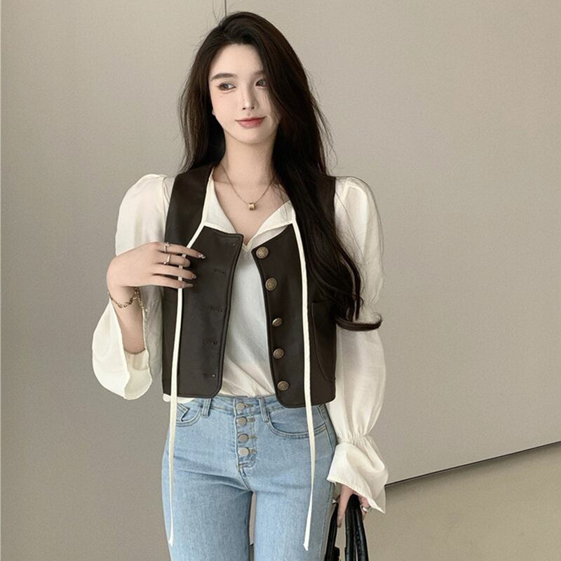 レザージャケット スプリングオータムルーズスタンダードVネックショートトップス レトロ 春物 秋物 セブンプリンセス21061709170