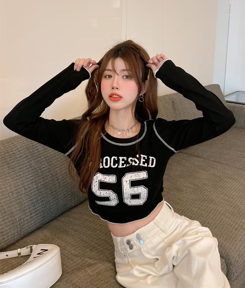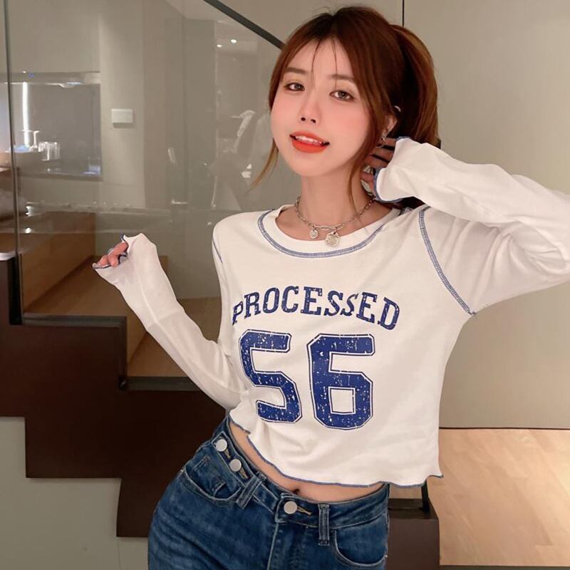 オータムレッドTシャツ シャツ ショートスリムプリントトップス ロング 秋物 セブンプリンセス15839774144