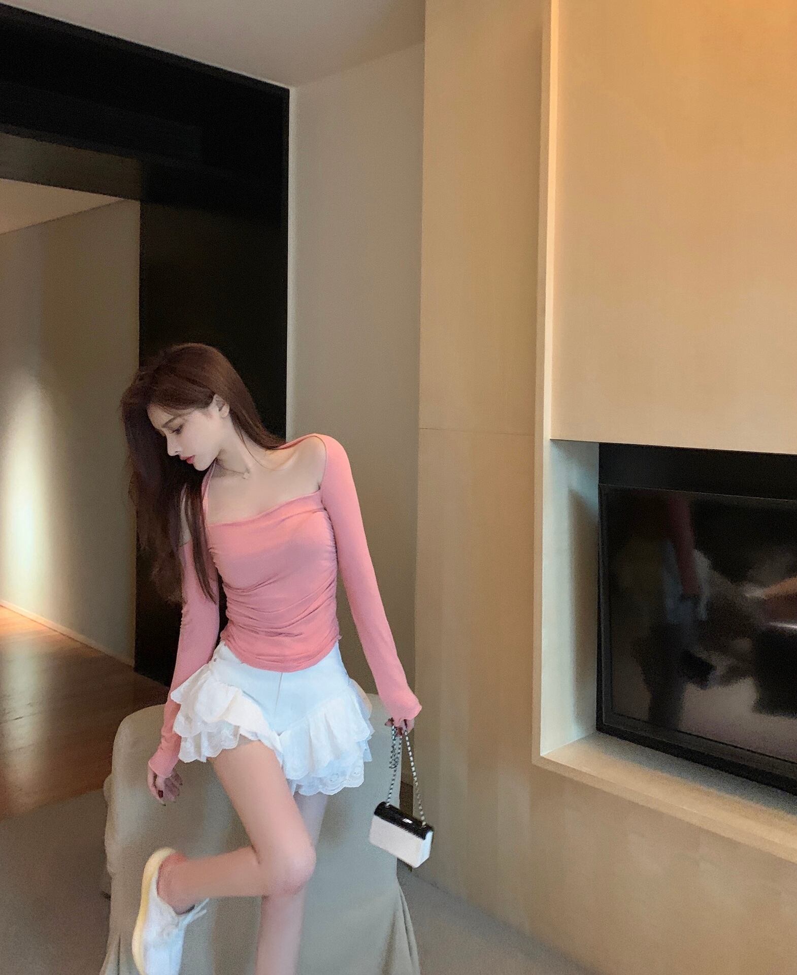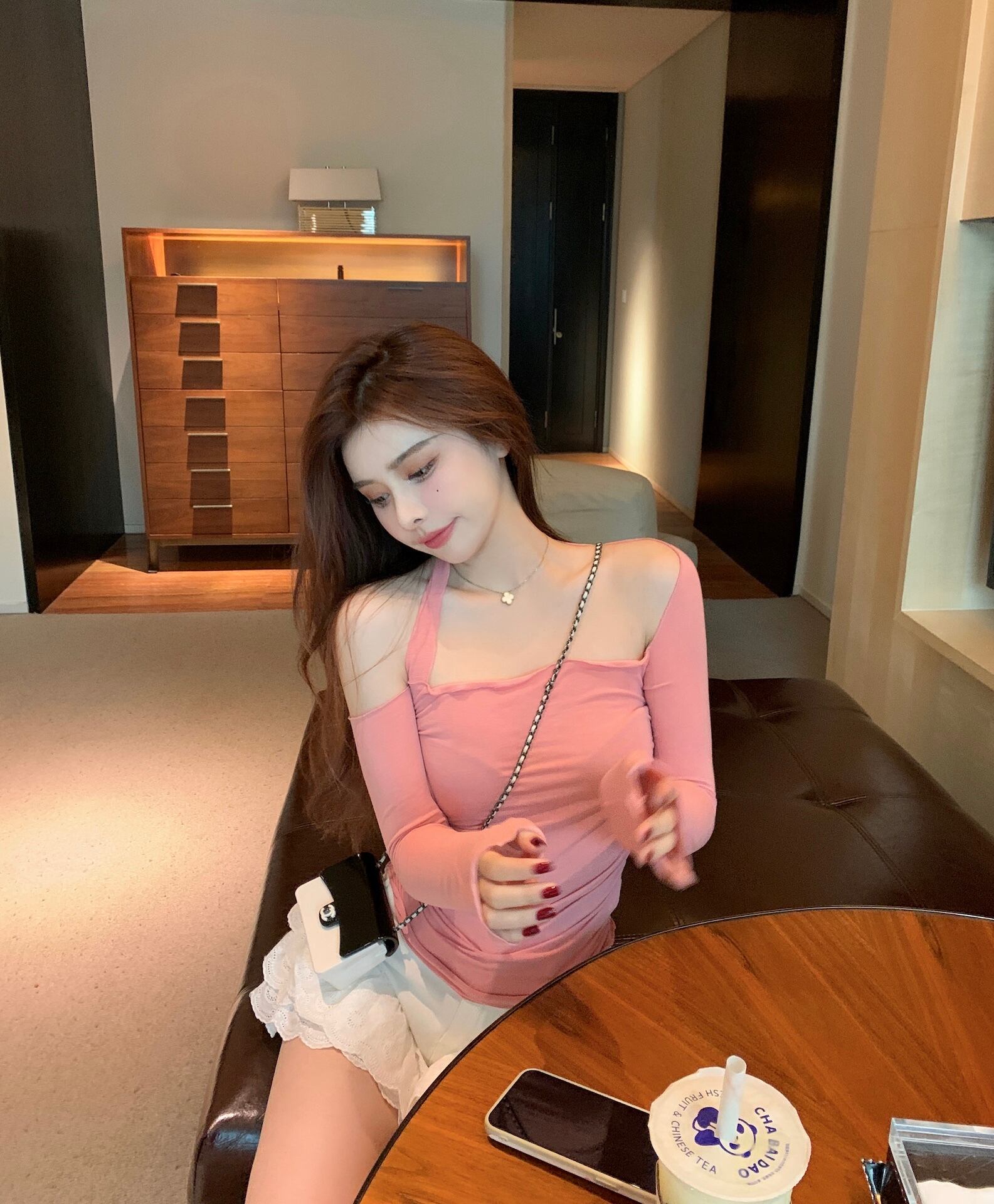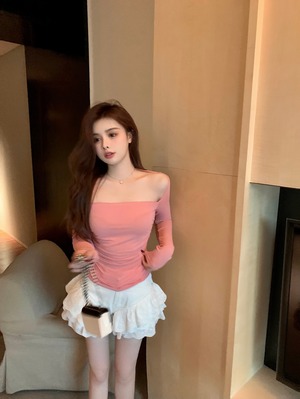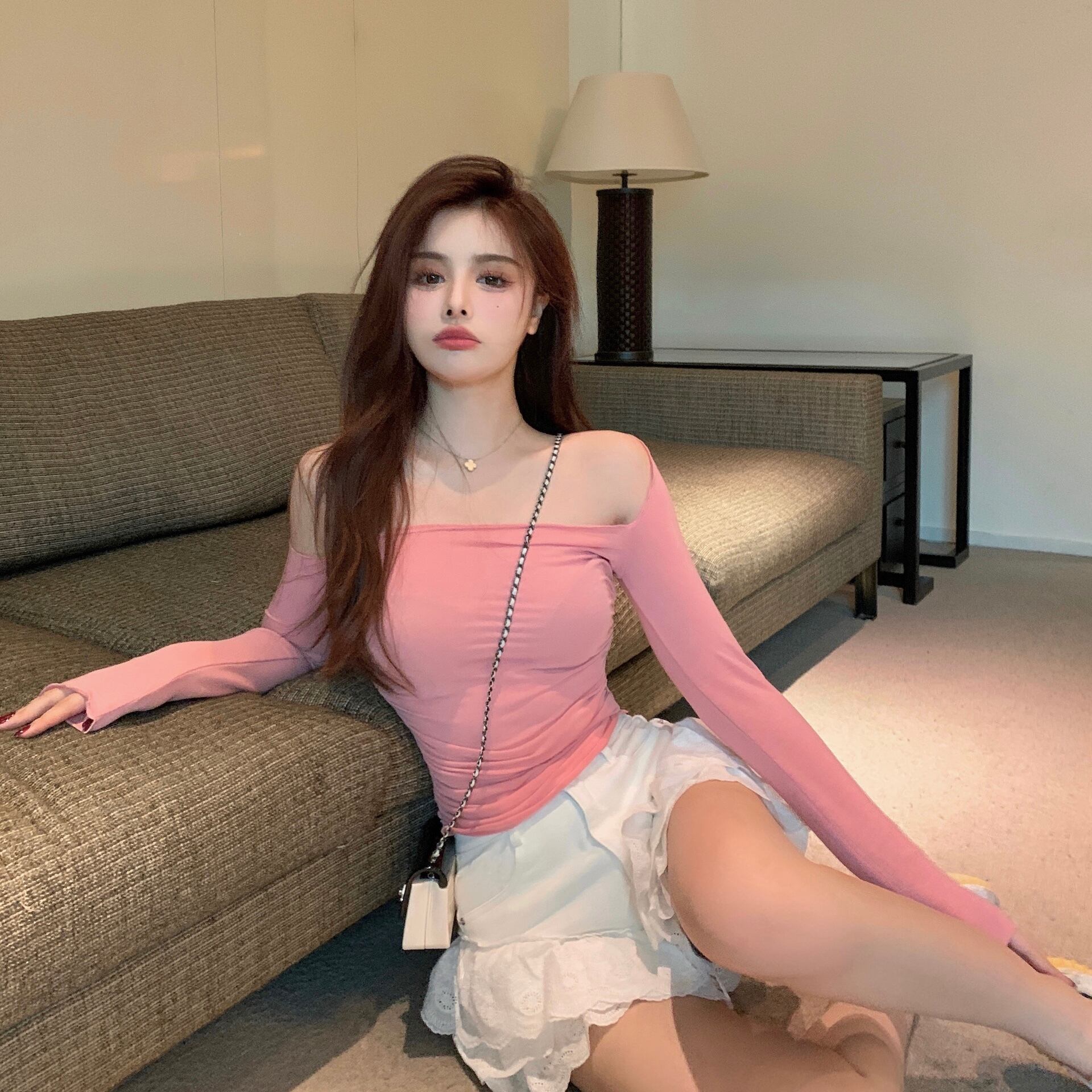 ショートTシャツ シャツ オータムスリムトップス ロング 秋物 オフショルダー ピュア セブンプリンセス19734001224