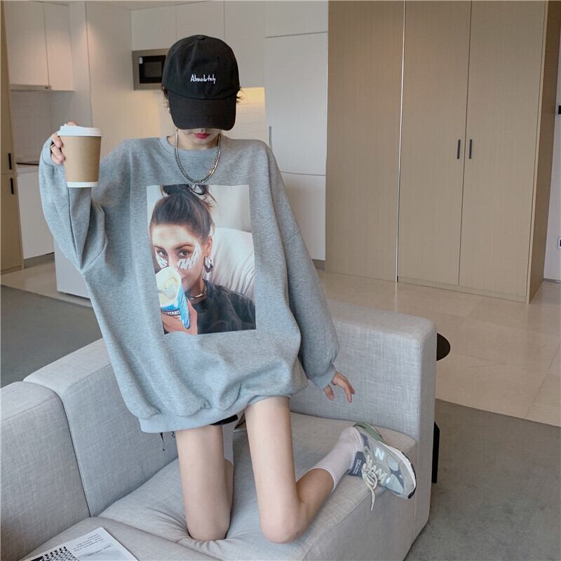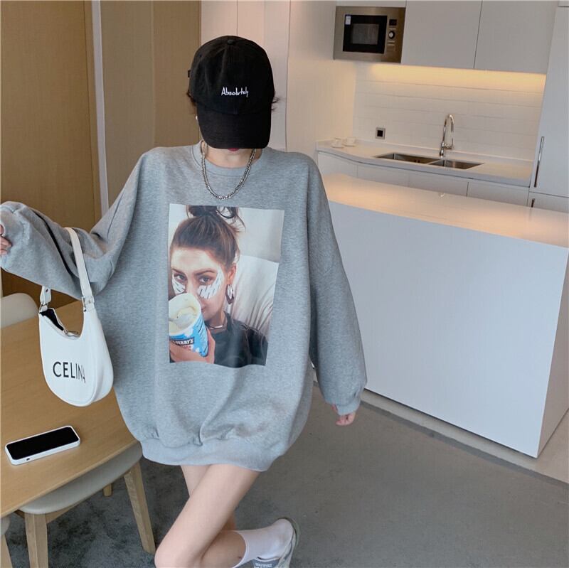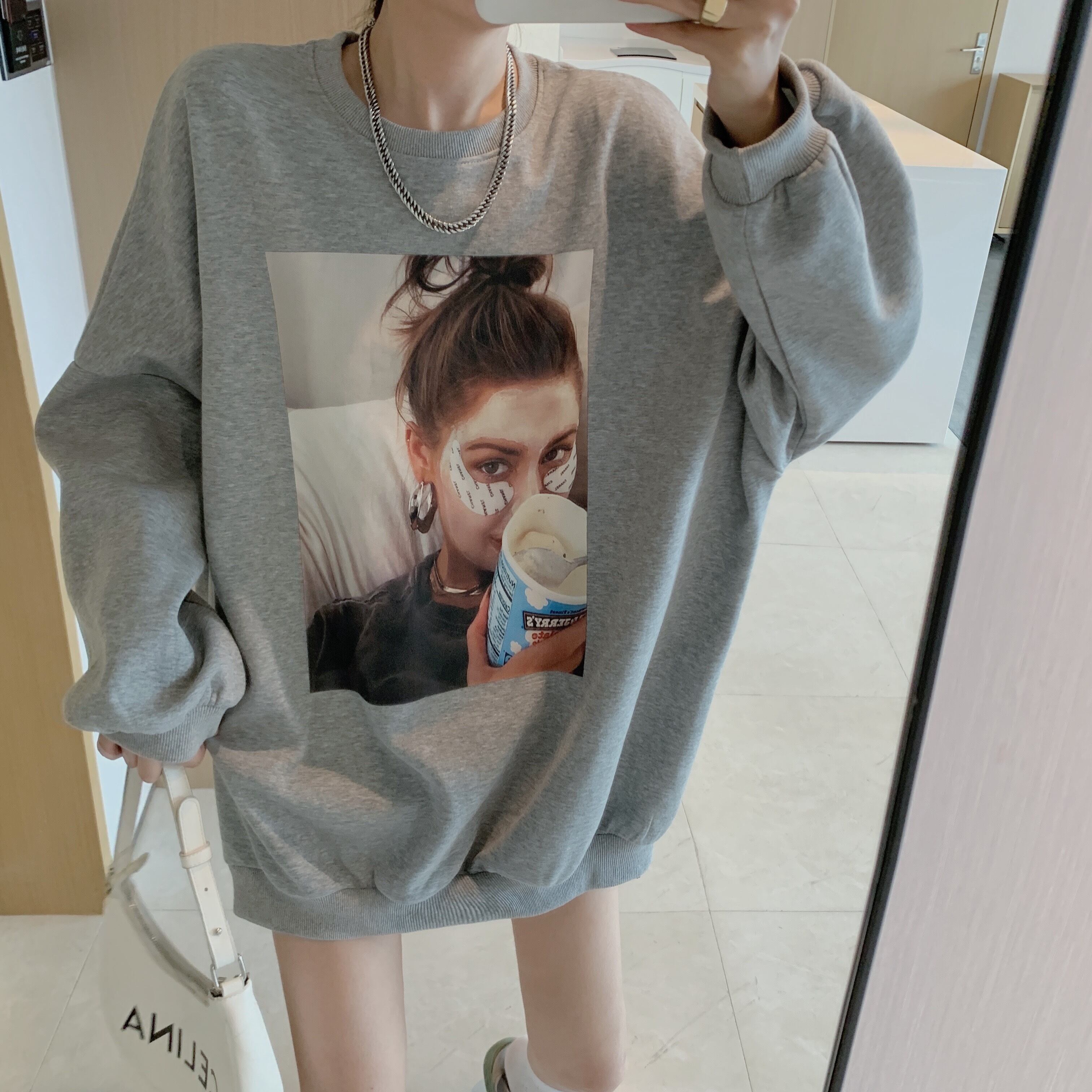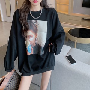 ラウンドネックセーター レディーススプリングオータム薄手ルーズプリント柄トップス ロング 春物 秋物 Oネック セブンプリンセス38884076481