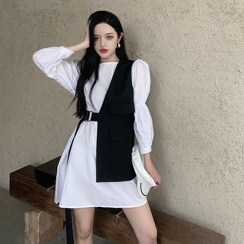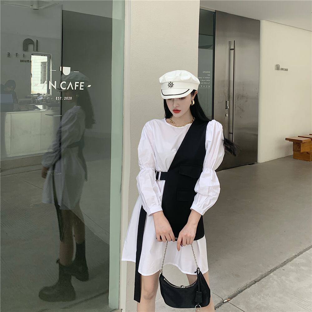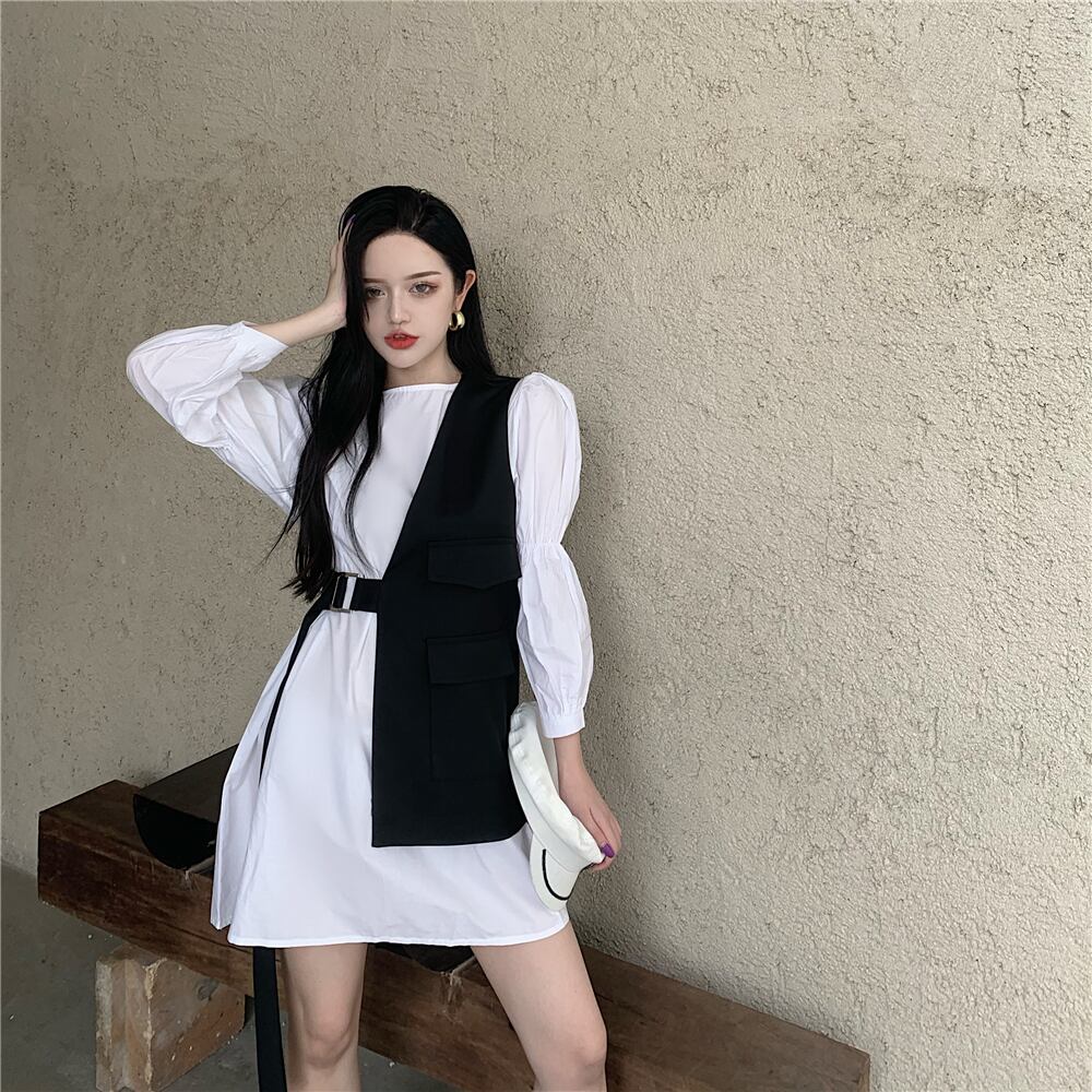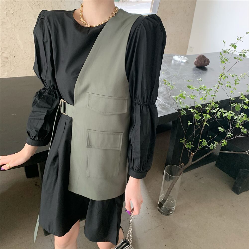 色:白のシャツ,黒いシャツ,黒のベスト,アーミーグリーンベスト
