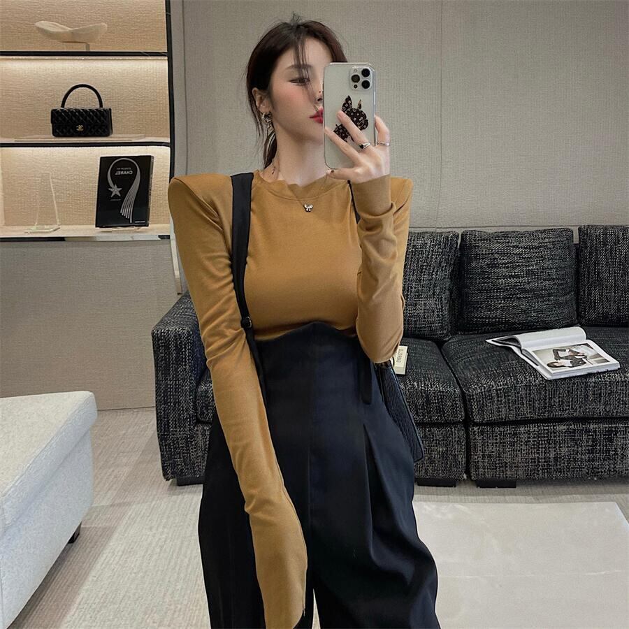 Tシャツ シャツ オータムスタイルソリッド カラーホルターショートトップス ロング 秋物 ソリッドカラー セブンプリンセス96902677762