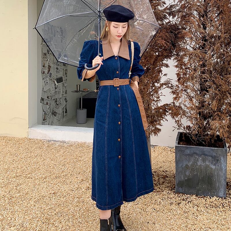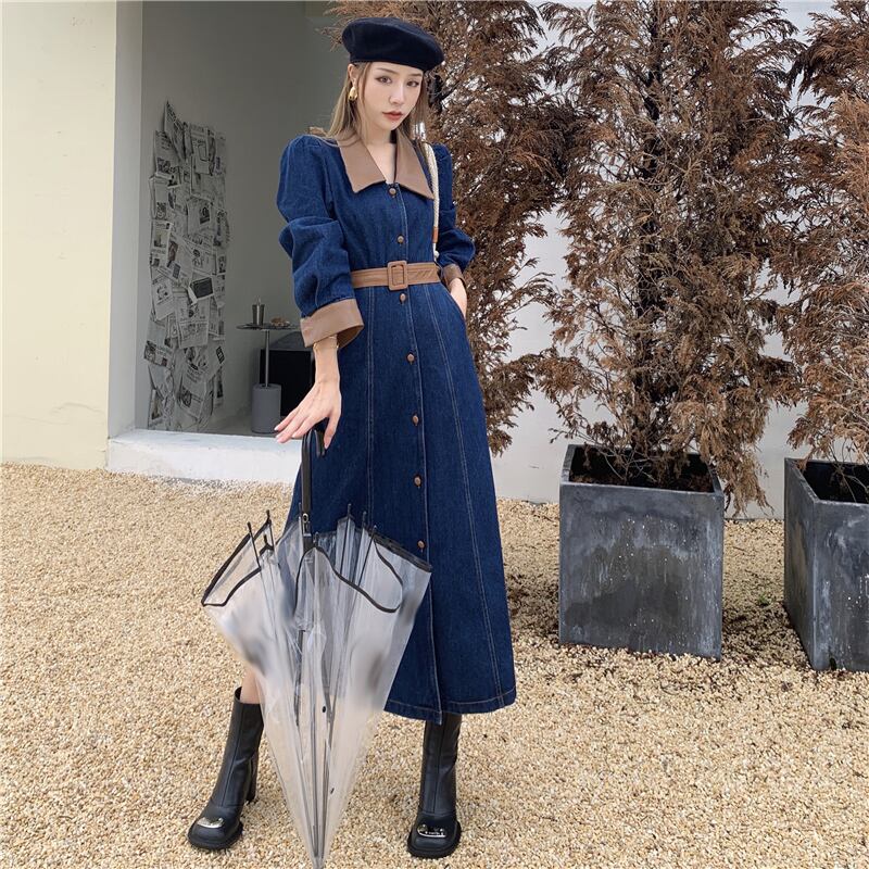 スタンダードドレス オータムロングスカート ウェスト レトロ 秋物 セブンプリンセス92501455891
