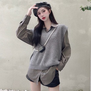 ニットスプリングオータムルーズVネックノースリーブセーター ジャケット 春物 秋物 セブンプリンセス75100835656