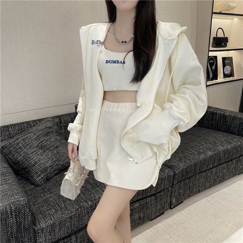 セーター ジャケット レディーススプリングオータム薄手ルーズフードジッパープリントカジュアルトップス ロング 春物 秋物 セブンプリンセス43383960695