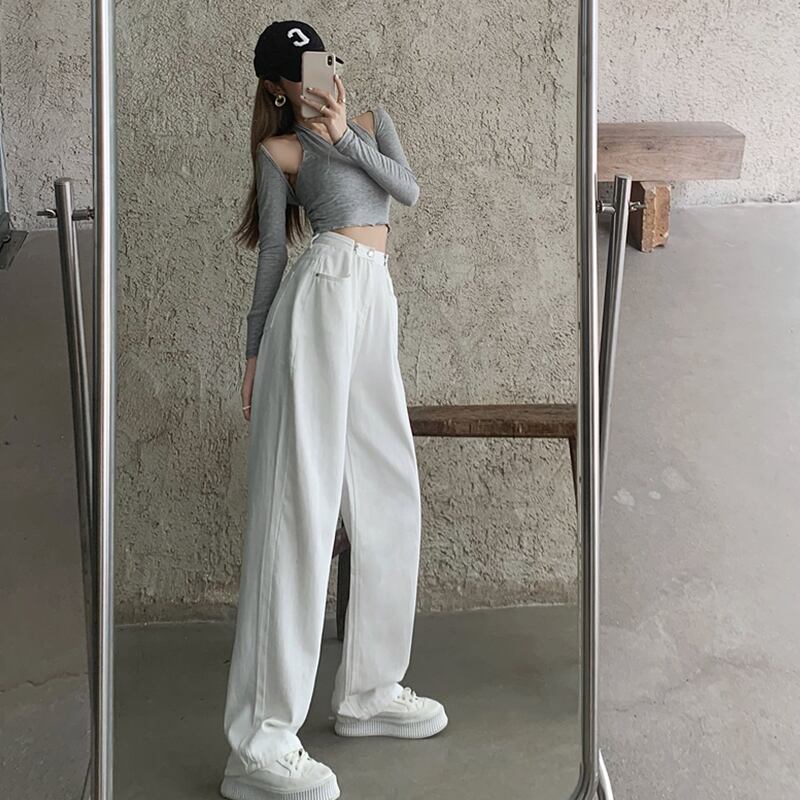 ハイウェストウェストジーンズ スプリングオータムルーズパンツ 薄手 春物 秋物 セブンプリンセス16518099269