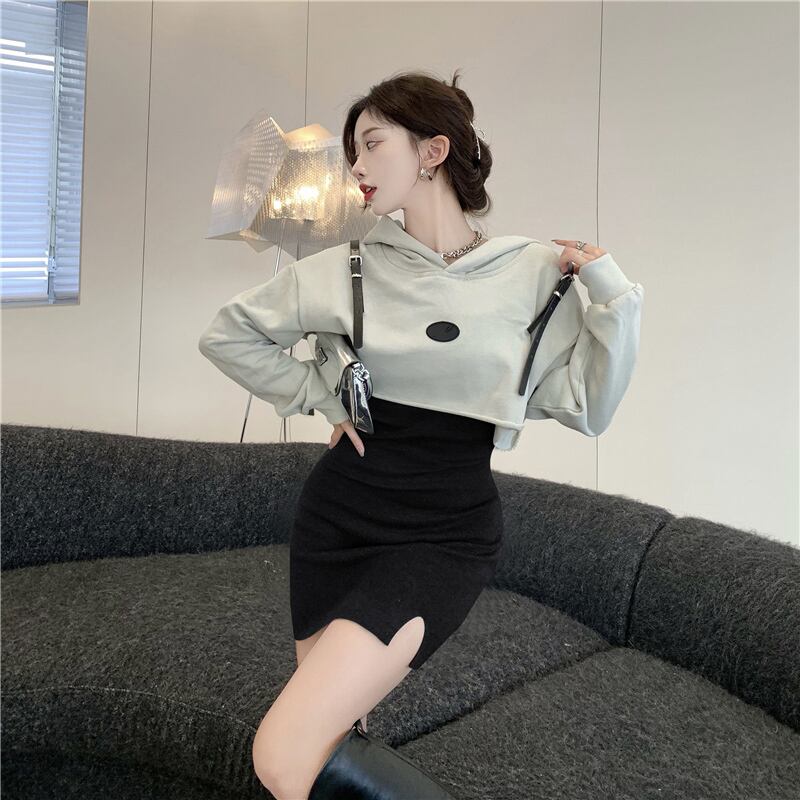 フードセーター スプリングオータムレッドルーズスタイルショートトップス ロング 春物 秋物 セブンプリンセス34642577769
