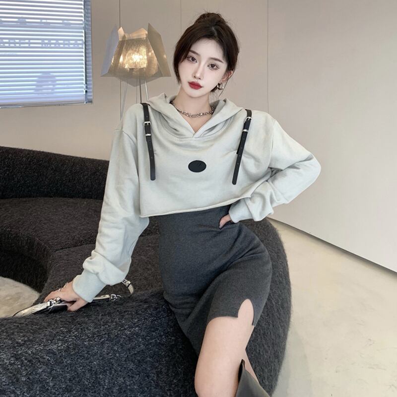 色:ブラックサスペンダースカート,グレーのドレス,コート