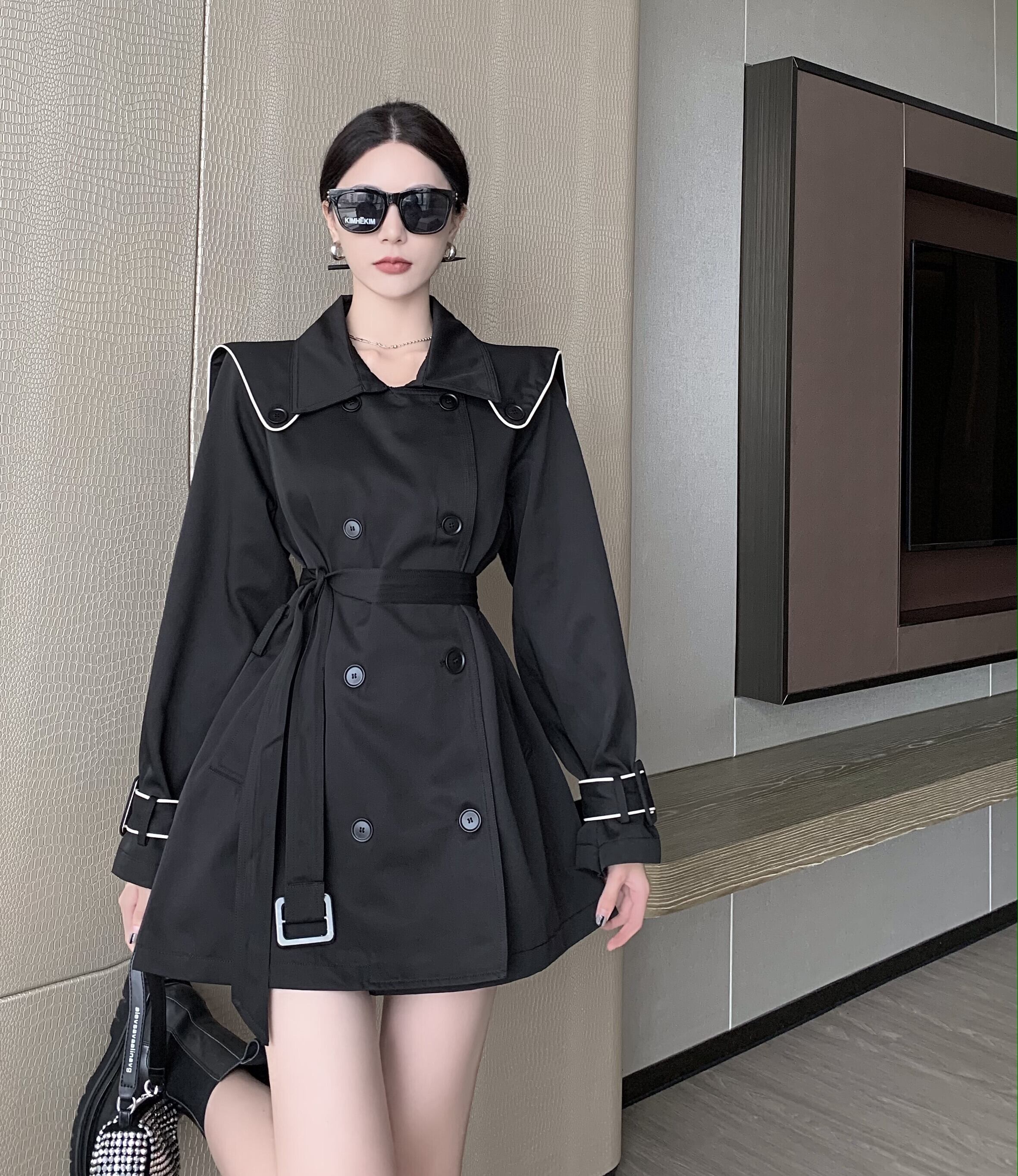 ブラックジャケット スプリングオータムスタイルロングルーズウェストトップス 春物 秋物 セブンプリンセス10927633504