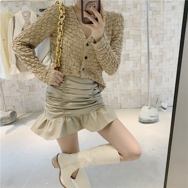 スタンダードVネックシャツ オータムルーズ薄手ショートトップス ロング レトロ 秋物 セブンプリンセス94170875942