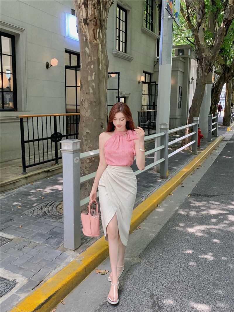 ノースリーブトップス サマーショート ピンク 夏物 オフショルダー セブンプリンセス52080342054