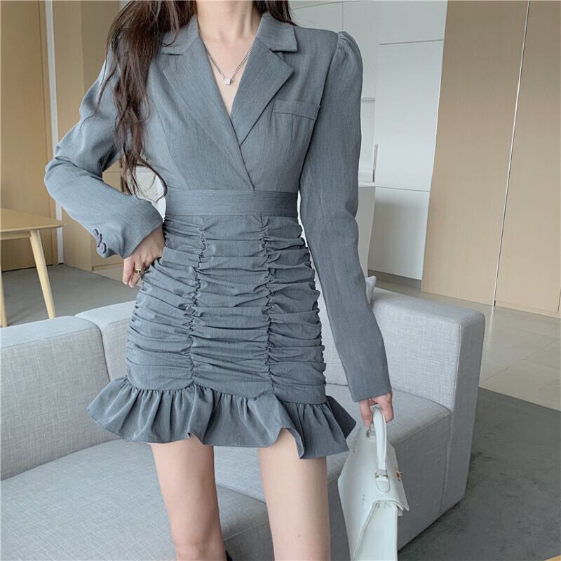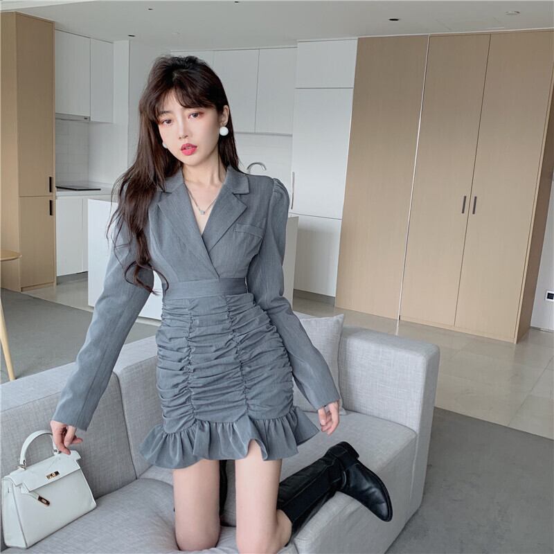 ドレス オータムスカート スリムプリーツグレー ロング 秋物 セブンプリンセス88992668499