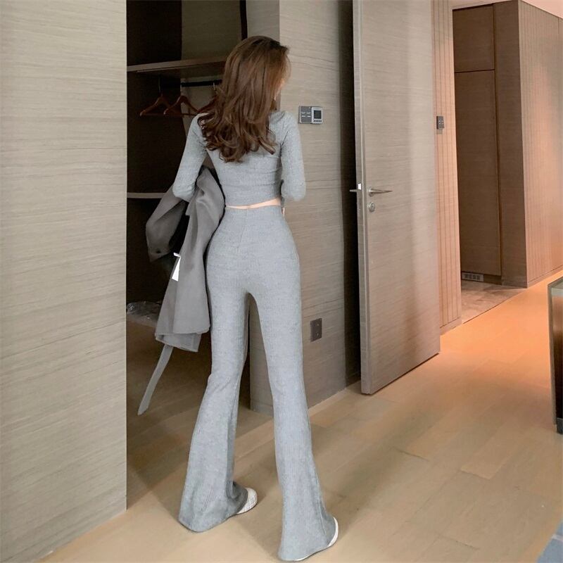 色:グレートップ,ブラックトップ,灰色のベルボトム,ブラックベルボトム