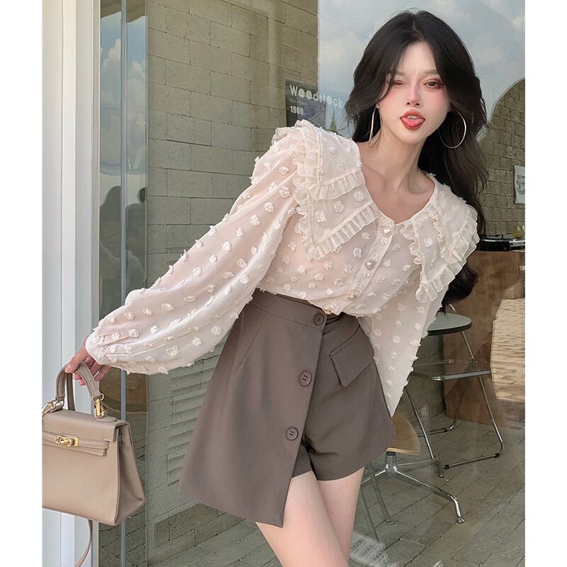 カラーシャツ オータムスタンダードルーズレース ロング レトロ 秋物 セブンプリンセス74845994111