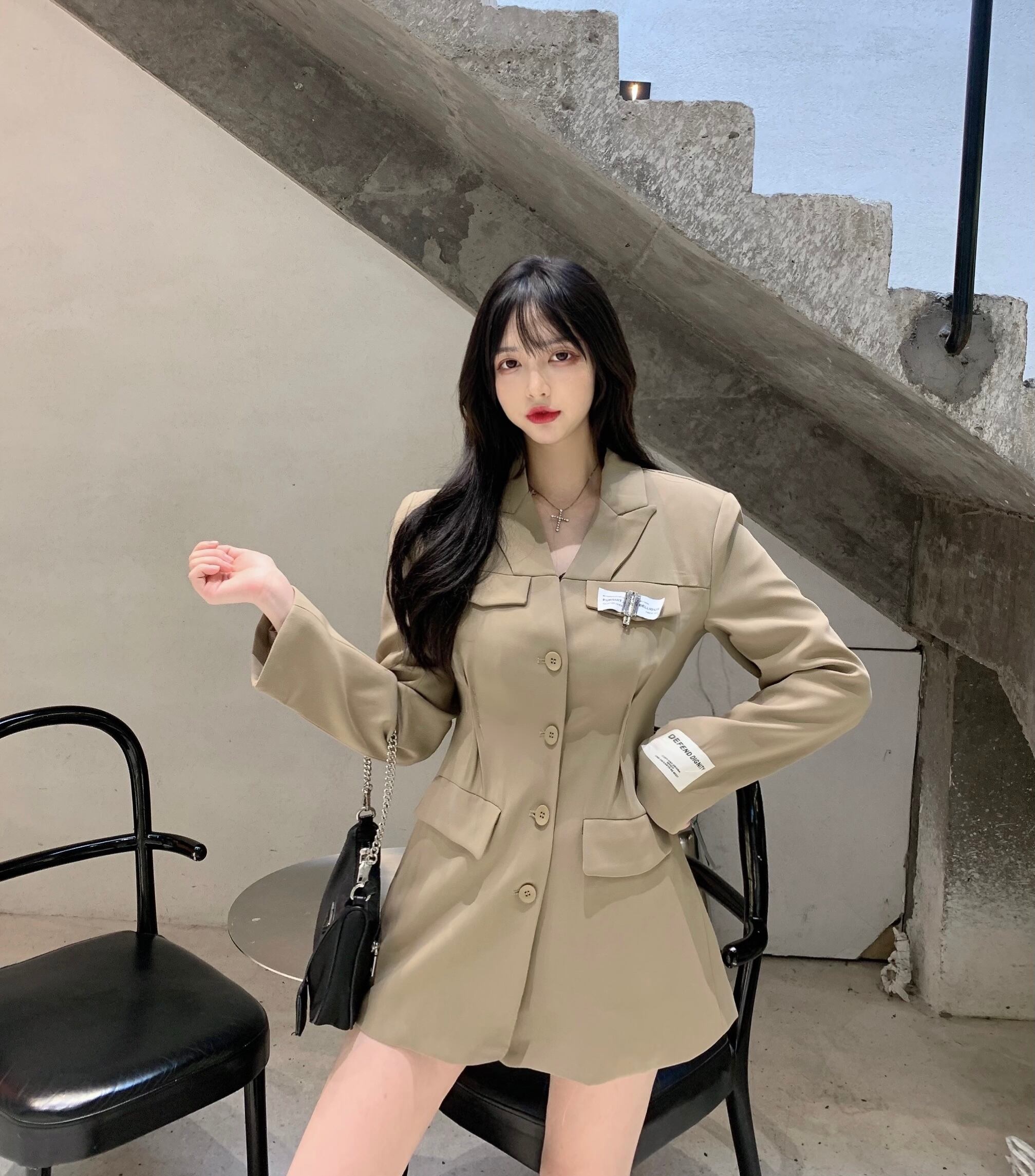 スタイルロングジャケット レディーススプリングオータムカジュアルルーズウェスト 春物 秋物 セブンプリンセス63350673282