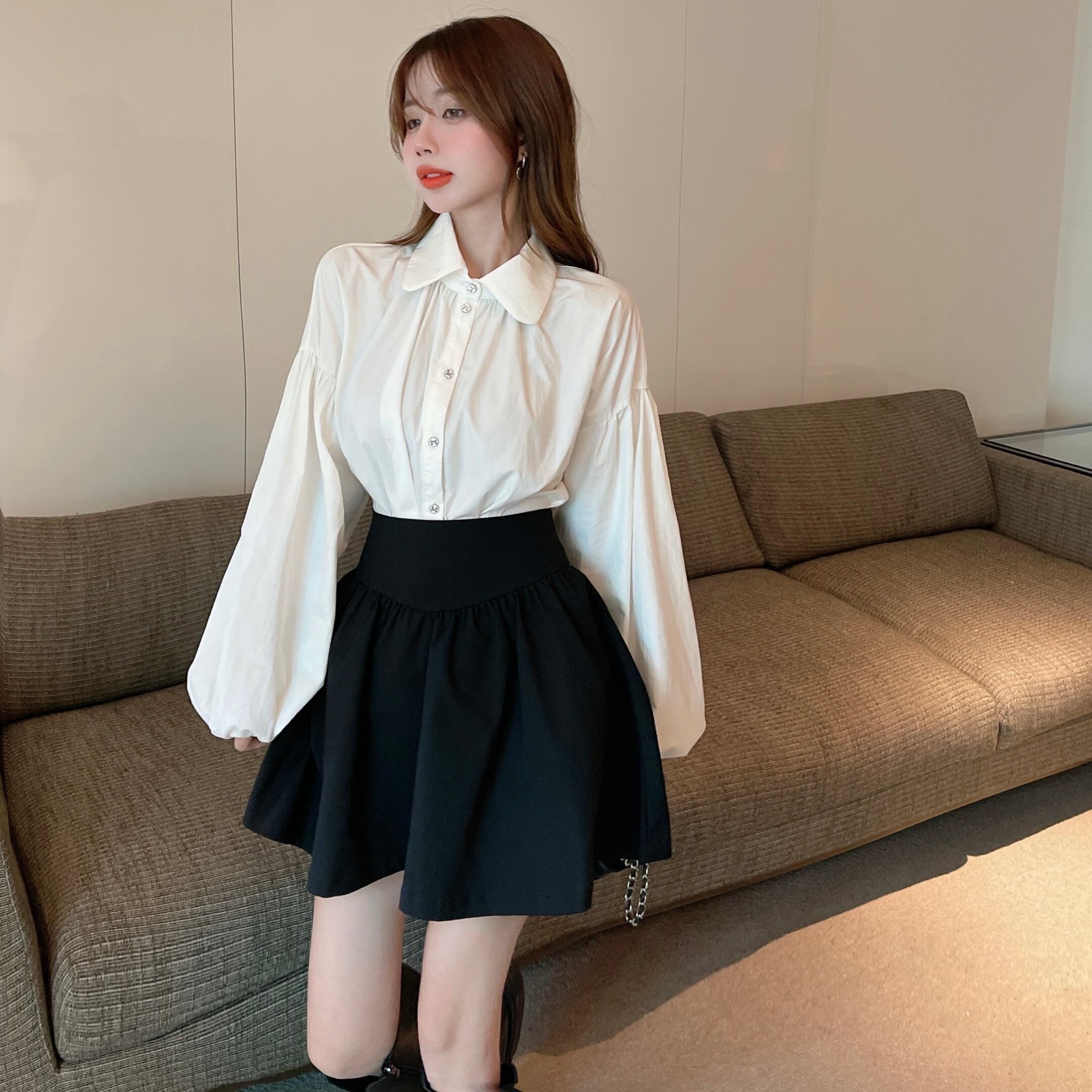 スリーブシャツ レディーススタンダードオータムルーズホワイトトップス ロング レトロ 秋物 セブンプリンセス47359022360