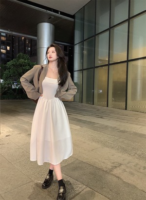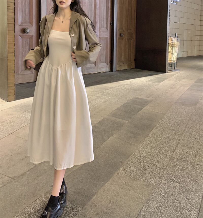 ドレス オータム薄手ロングスカート ウェストホワイト 秋物 セブンプリンセス55484905504