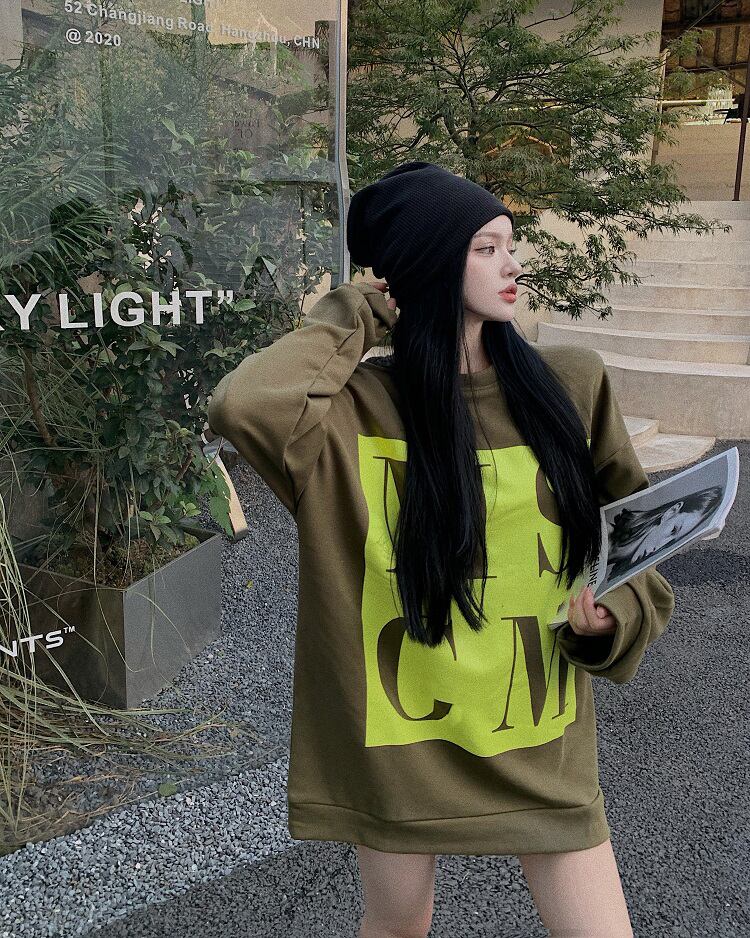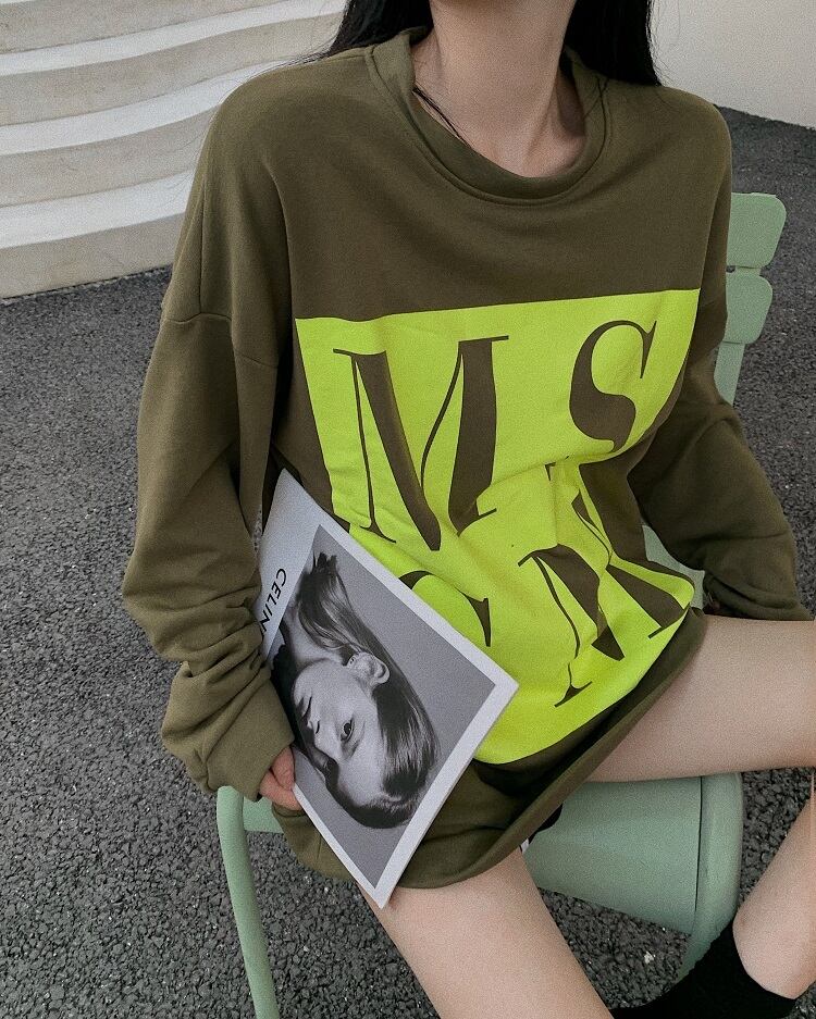 ラウンドネックセーター レディーススプリングオータム薄手ルーズジャケット プリントプルオーバー ブラウス ロング 春物 秋物 Oネック セブンプリンセス38806468499