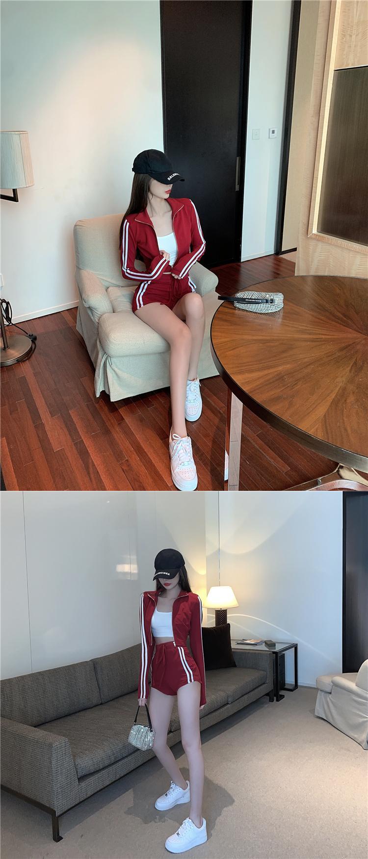 セット スリムストライプジャケット ハイウェストギャザーショーツ ブルマー セブンプリンセス96950010494