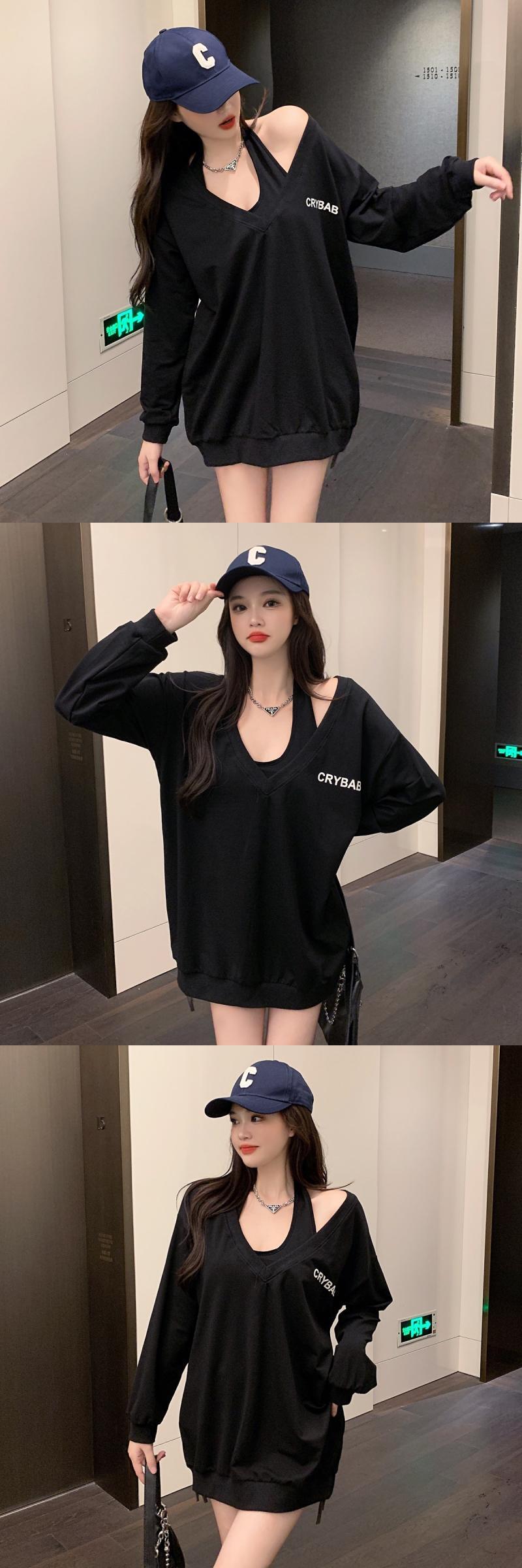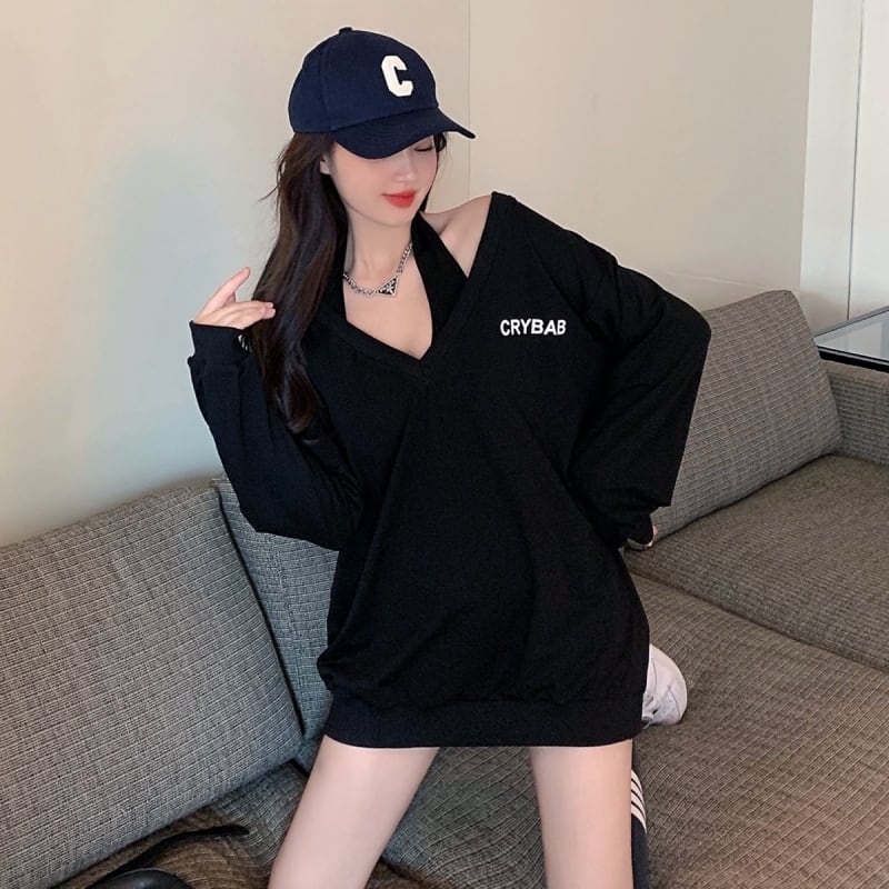 スタイルルーズセーター スプリングオータム薄手Vネックレッドトップス ロング ストリート 春物 秋物 セブンプリンセス62494606593