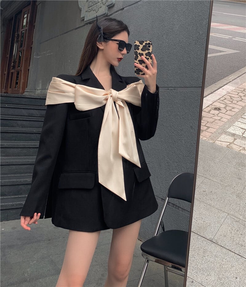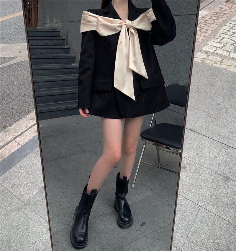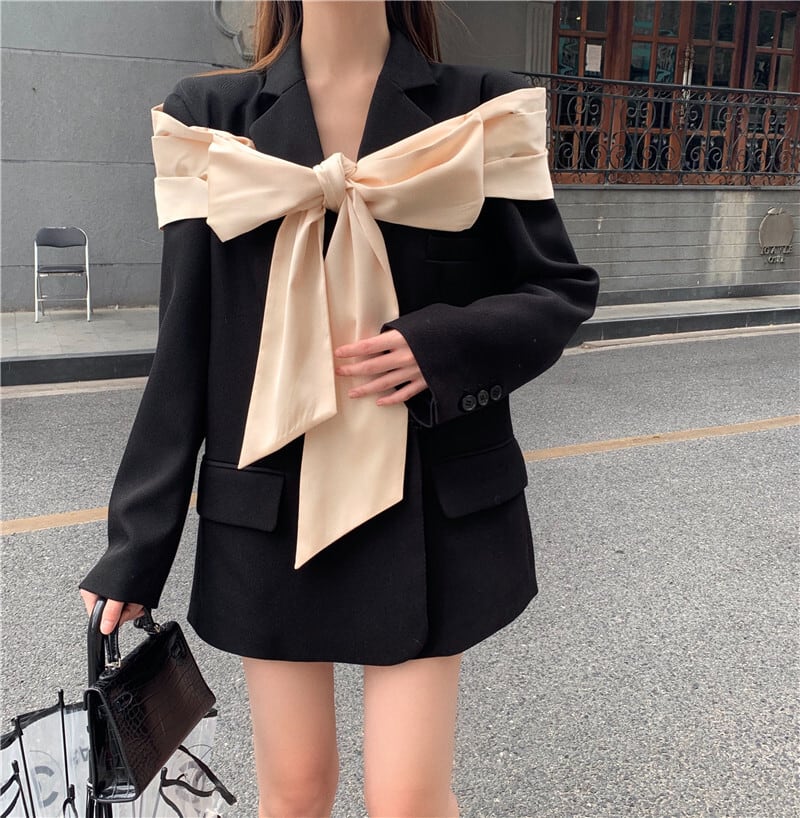 カジュアルジャケット オータムスタンダードリボンルーズ ロング レトロ 秋物 セブンプリンセス54992361303