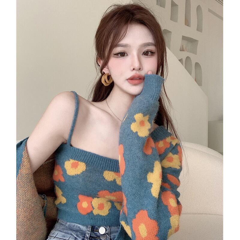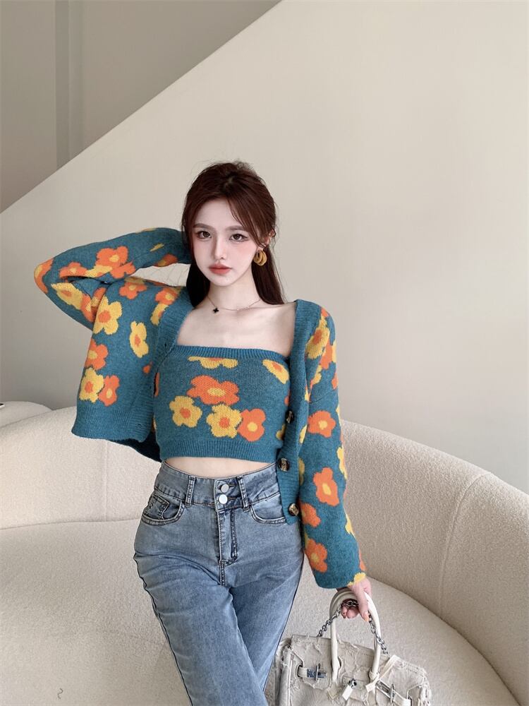 スタイルニットカーディガンジャケット オータム薄手Flowerデザイン セーター ショートトップス ロング 秋物 フラワーデザイン セブンプリンセス50060097775