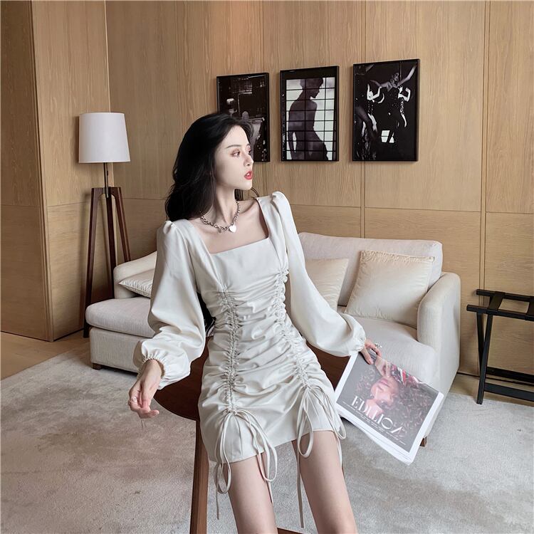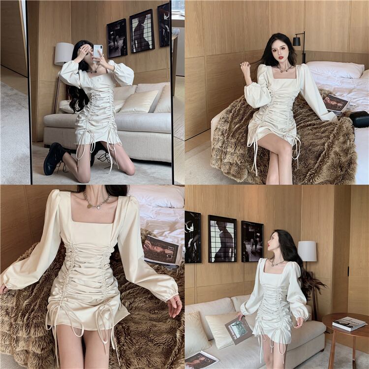 オータムプリーツドレス レース 秋物 レースアップ スクウェア セブンプリンセス45862500245