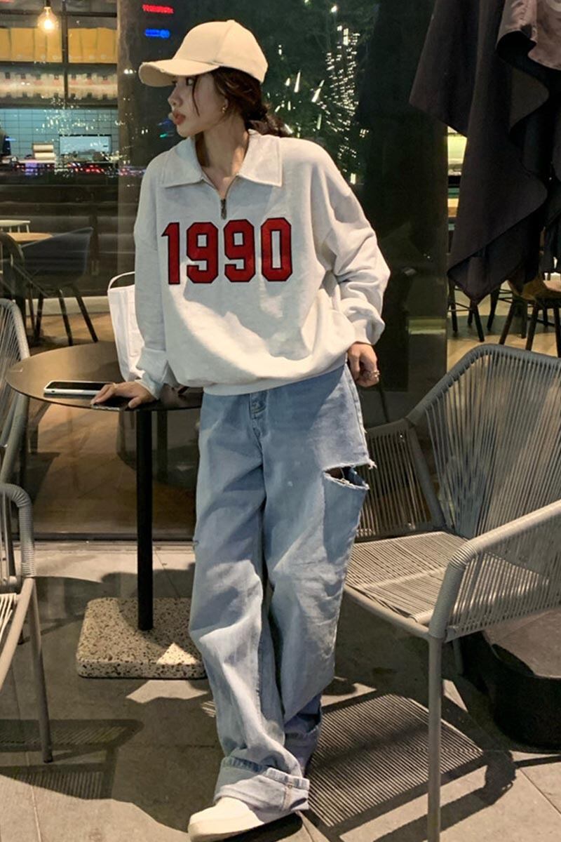 スタイルグレーセーター スプリングオータム薄手プリントジャケット プルオーバー トップス ロング 春物 秋物 セブンプリンセス1277343803