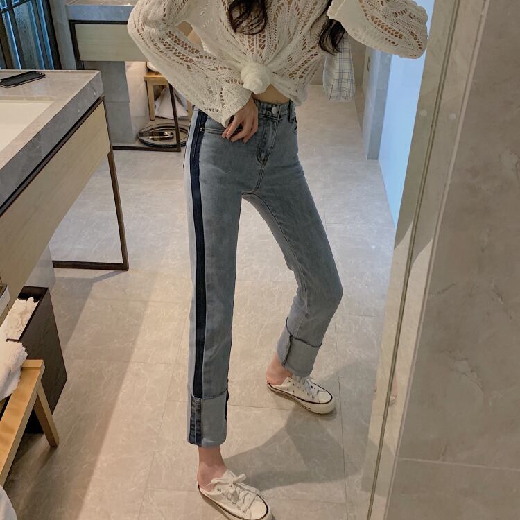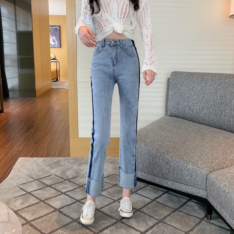 スタンダードサイドジーンズ ハイウェストウェスト薄手パンツ レトロ セブンプリンセス70228205994