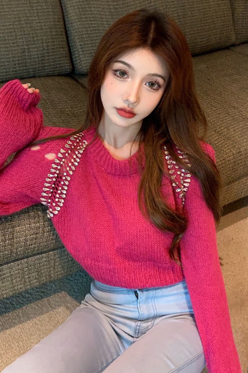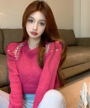 ニットセーター オータムプルオーバー ショートトップス ロング 秋物 セブンプリンセス40826032469