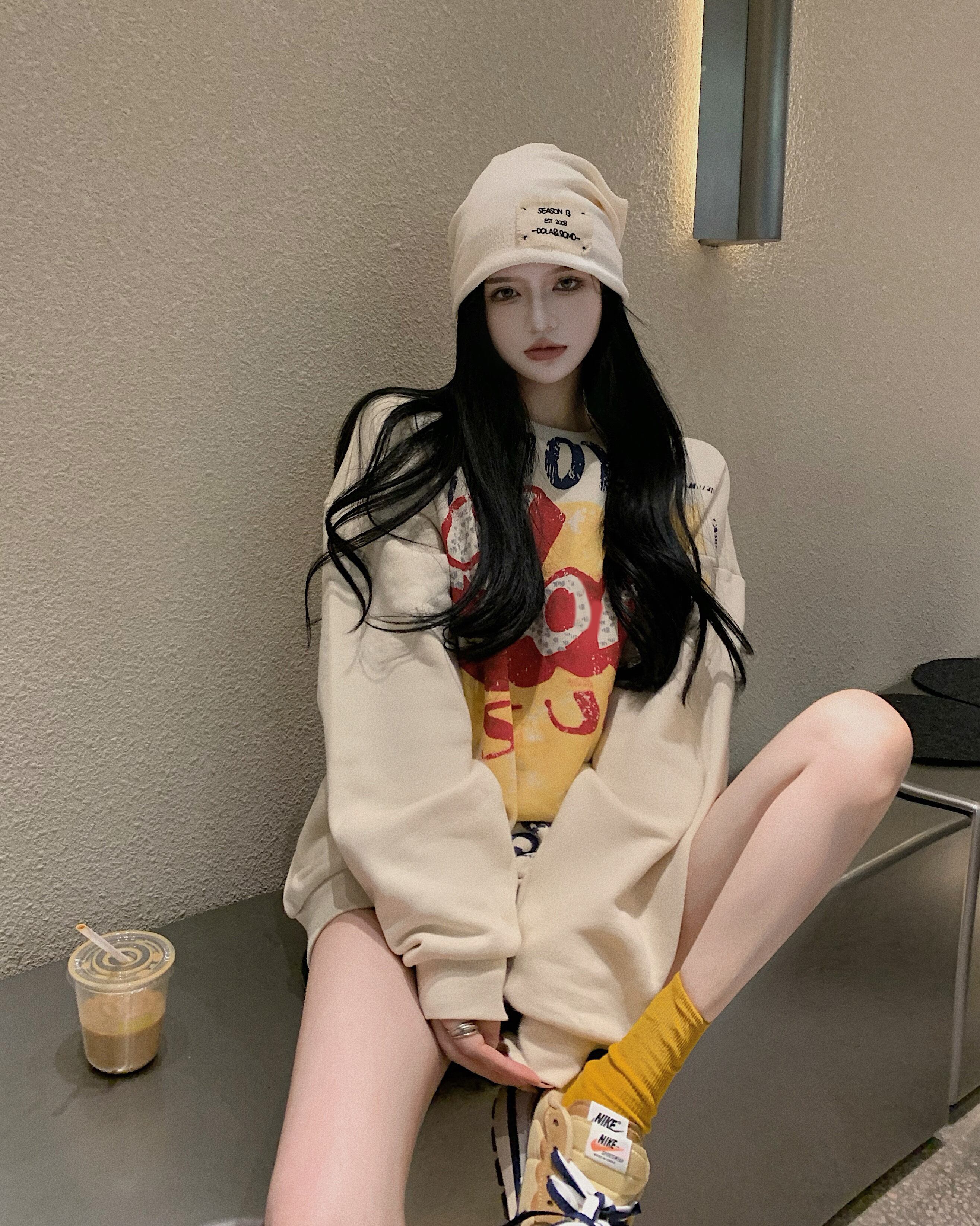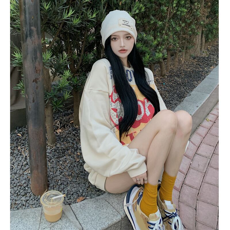 スタイルスタンダードプリント柄ラウンドネックセーター レディーススプリングオータムルーズジャケット プルオーバー トップス ロング レトロ 春物 秋物 Oネック セブンプリンセス63123095563