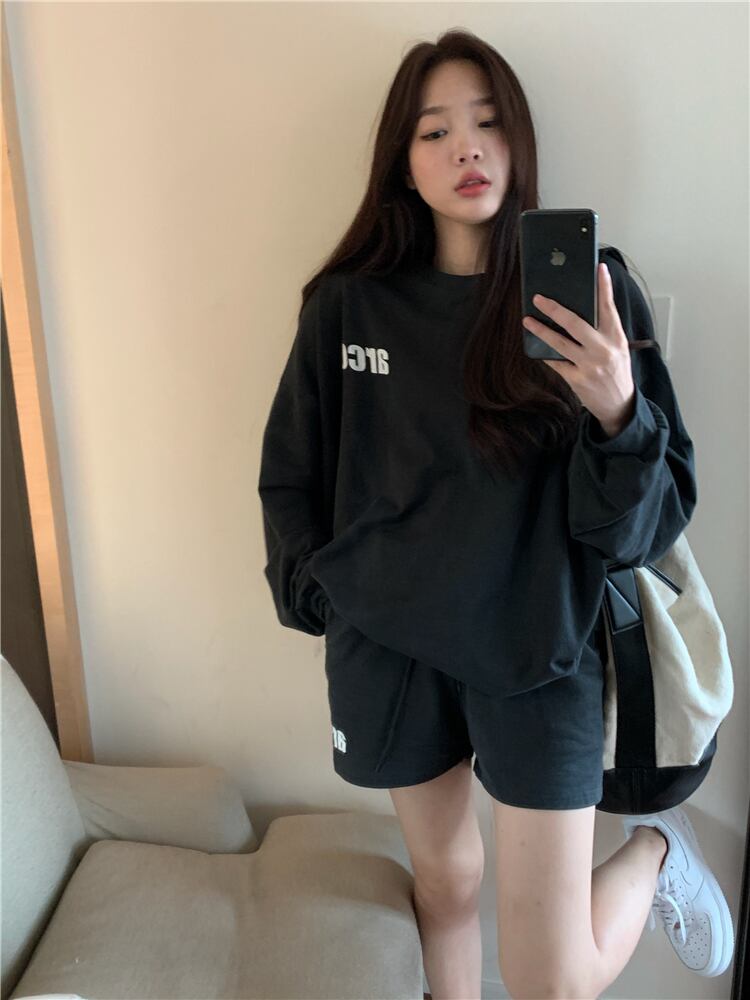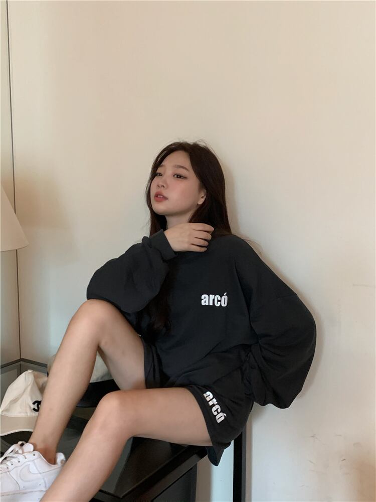セーター レディーススプリングオータムラウンドネックプリントルーズスタイルトップス ロング 春物 秋物 Oネック セブンプリンセス93904224741