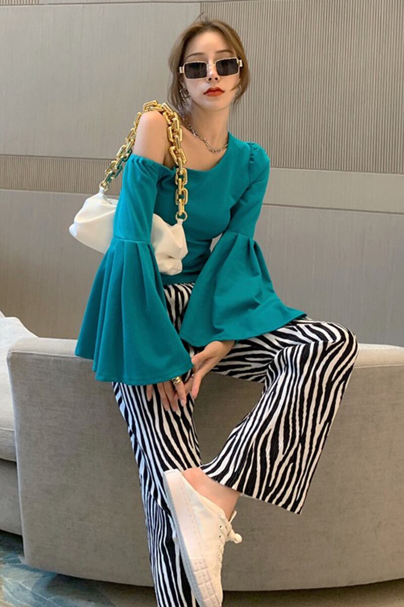 色:ゼブラ柄パンツ,ブラックトップ,マラカイトグリーントップ